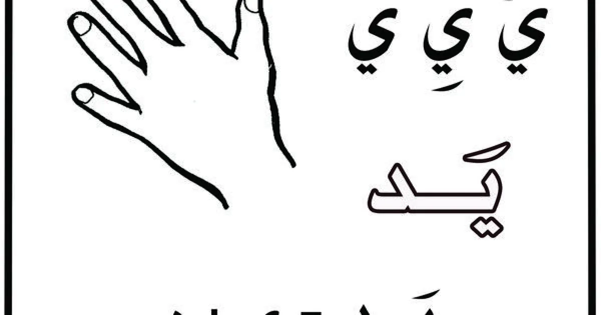 - في ورقة أخرى قومي بقصها من المنتصف فقط ،وأسفل خط المنتصف قومي وضع نقطتين ثم نلصق اليد على الورقة المفتوحة من المنتصف بحيث تغطي النقطتين، وهكذا يصبح لدينا حرف الياء.