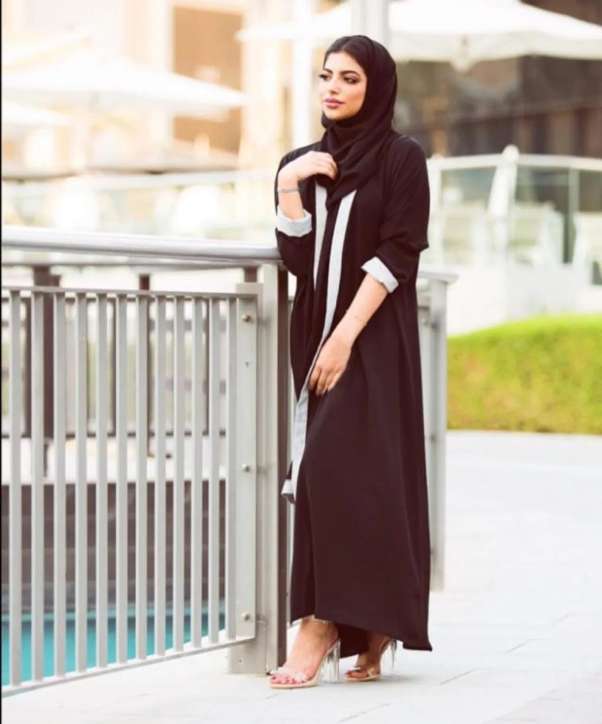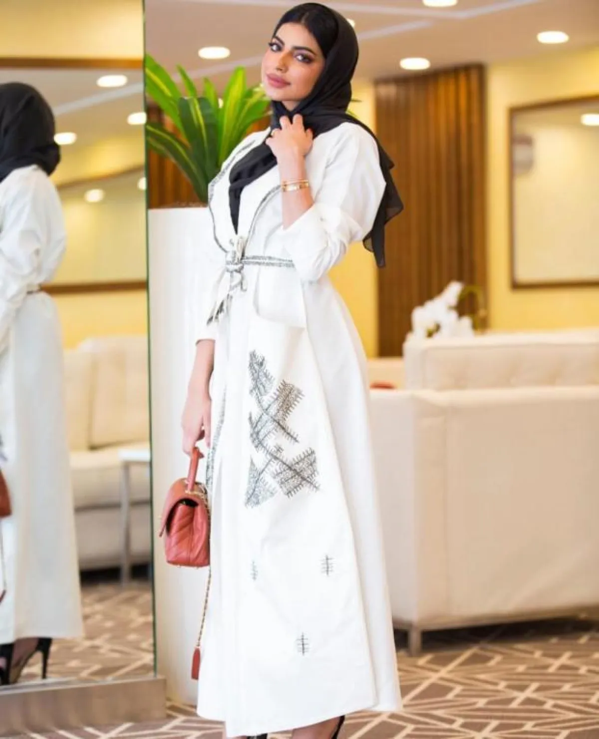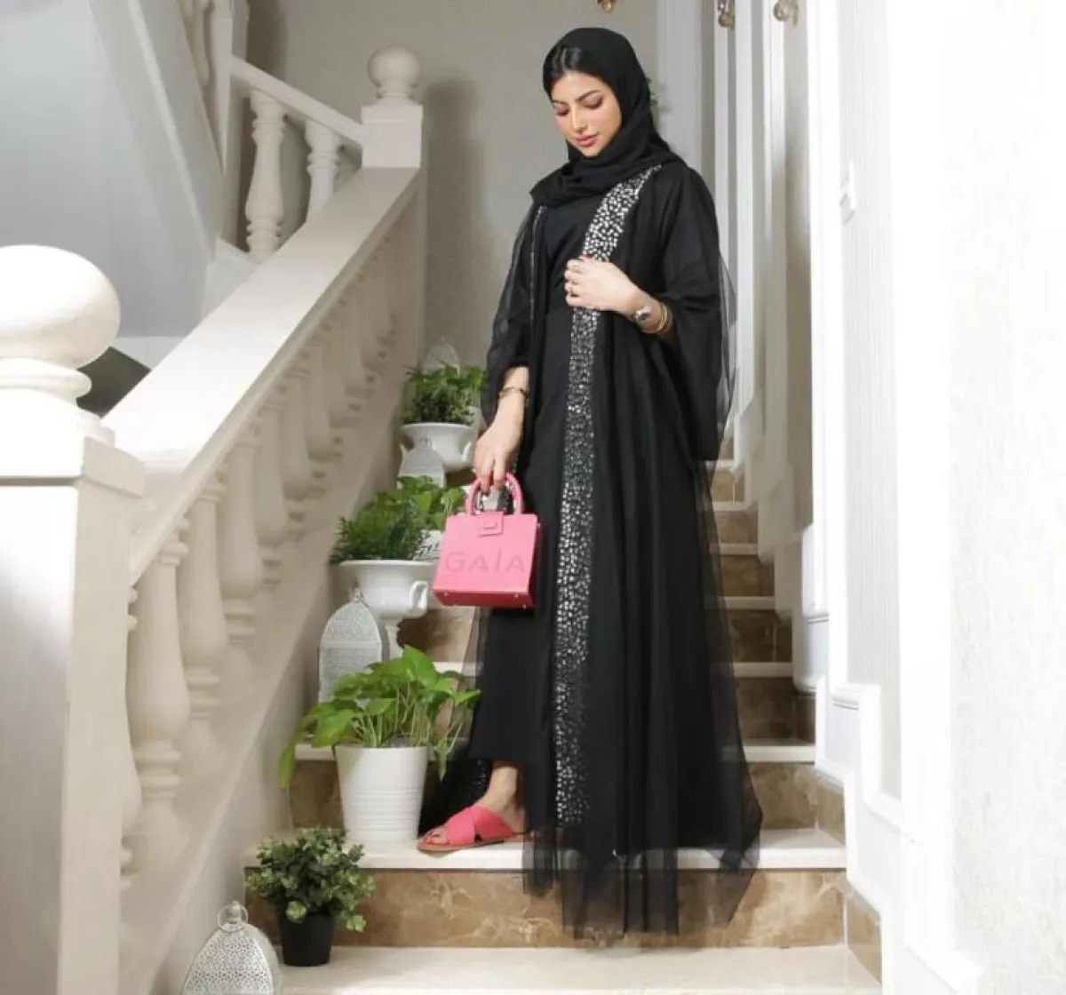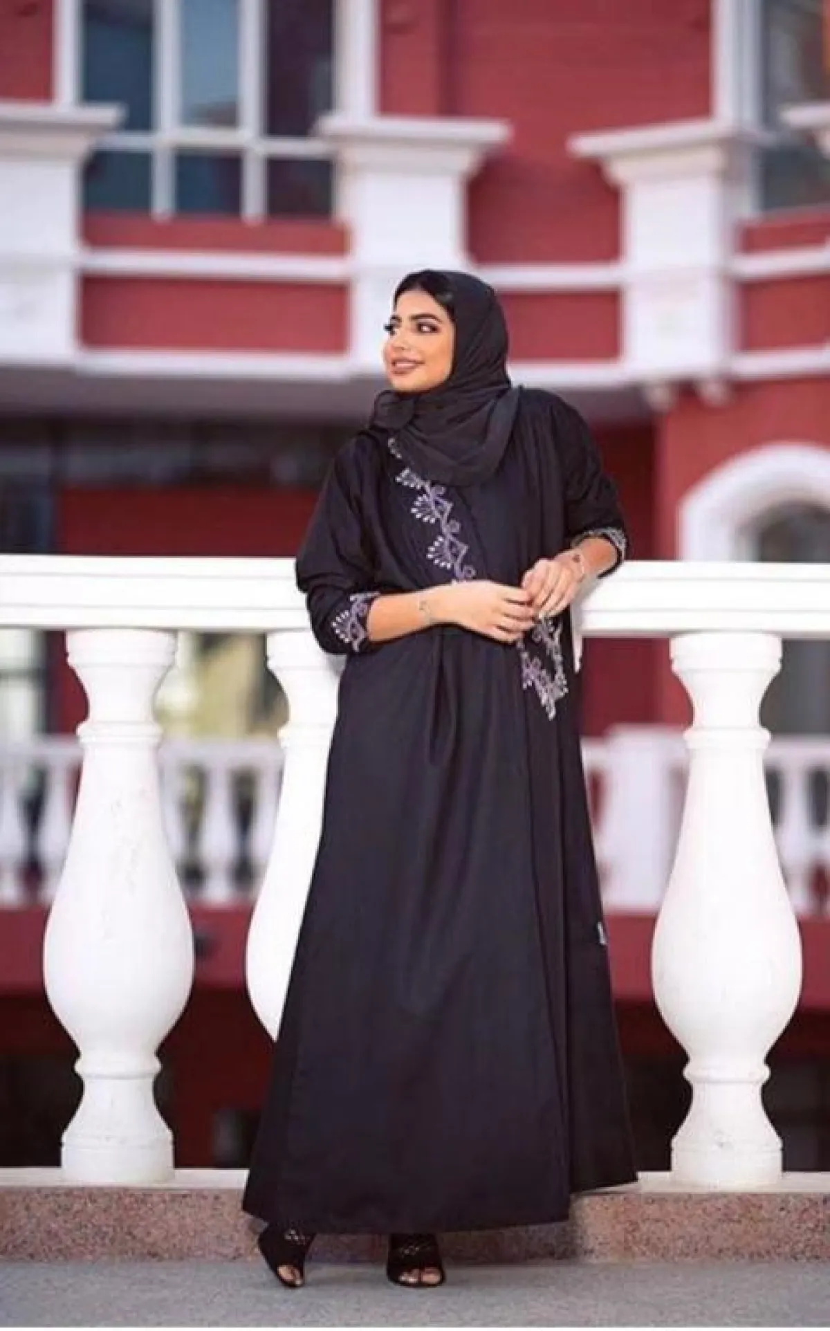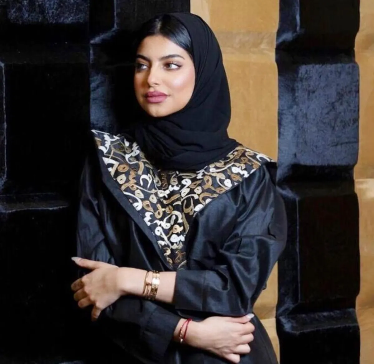 وظهرت كذلك بعباية سوداء مزينة بلمعة فضية من المنتصف وقماش شفاف، وأطلت بعباية سوداء بأكمام واسعة ونقشات باللون الأسود في المنتصف، وعباية أخرى باللون الأسود مزينة بقماش برونزي من الأكمام وتطريزات عدة برونزية مبتكرة في العباية، كما تألقت بـ عباية سوداء مطرزة بحروف بنيّة من منطقة الرقبة على شكل سبعة.