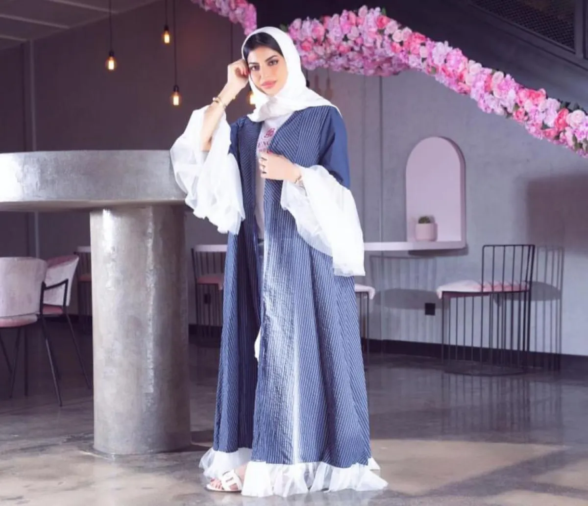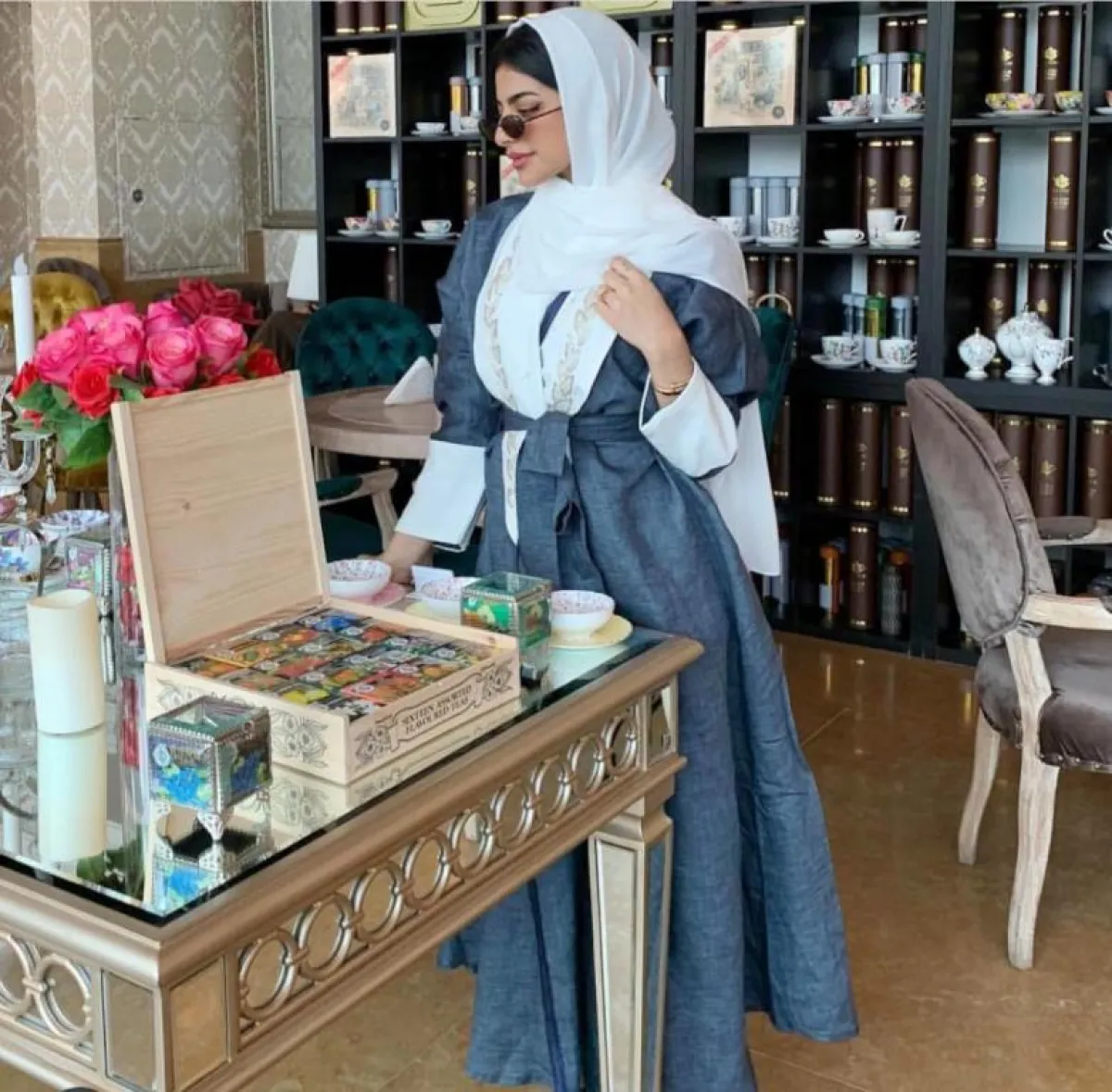 بينما ارتدت عبايات عدة ملونة، أبرزها عباية كحلية بخطوط بيضاء مزينة بكشكشة في أطراف الأكمام وأسفل العباية، وتألقت بعباية كحلية بحزام خصر ونقشة فضية بالأطراف، وزيَّنها قماش بني في الأكمام، وتجملت بعباية بيج بسيطة بخطوط بنية ناعمة، وعباية باللون الأزرق النيلي لاطلالة لافتة وبسيطة، كما أطلَّت بعباية رمادية مزينة بقماش أسود في أطراف الأكمام، ومنقوشة في الكتف، مع حزام للخصر، وظهرت بعباية بيضاء يزينها حزام خصر ونقشات فضية.