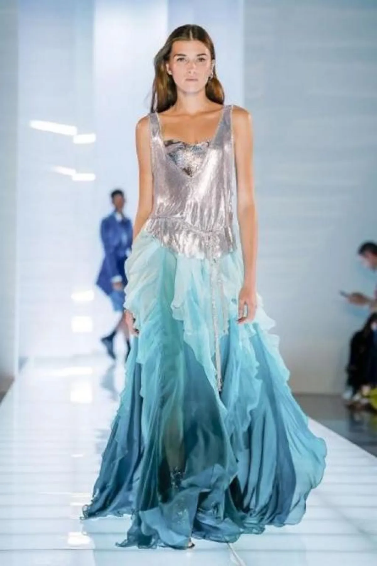 - تبقى فساتين السهرة المميزة بقصة ذيل السمكة Mermaid dresses واحدة من الموديلات المعروفة بتأثيرها الفوري على شكل القامة حيث توحي بأنها أكثر طولًا، وننصحك بإلقاء نظرة على الفستان الـ One Shoulder من مجموعة رالف آند روسو Ralph & Russo أو فستان المصمم اللبناني طوني ورد Tony Ward.