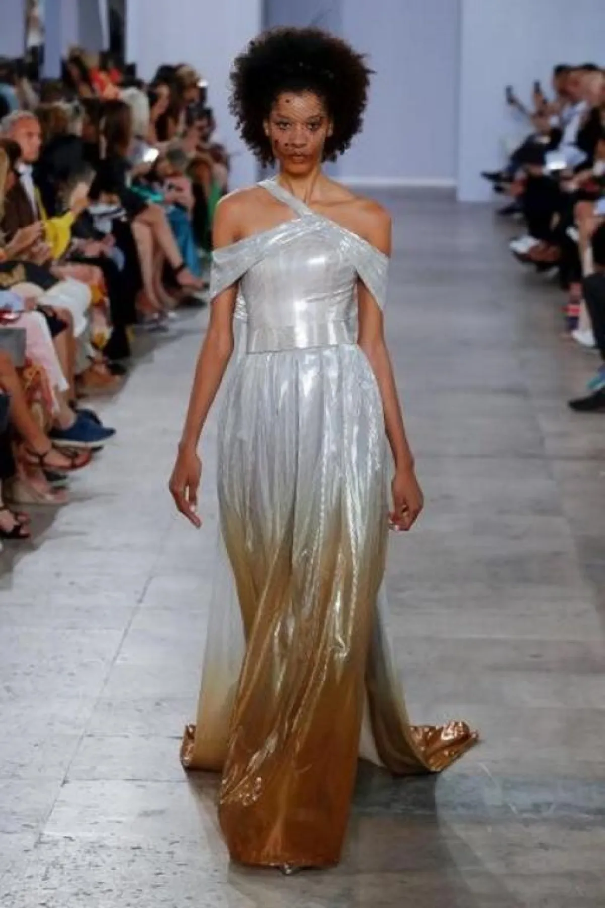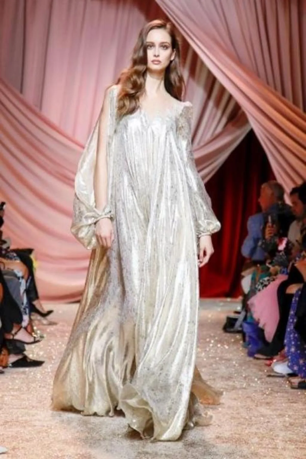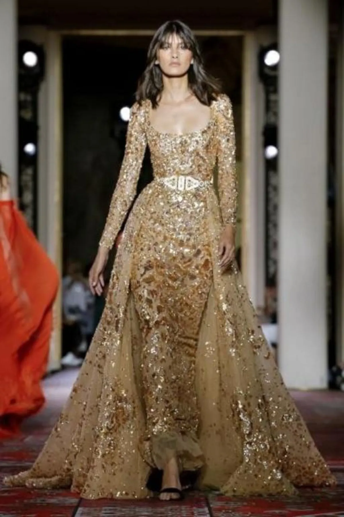 - ضمن أسبوع باريس للهوت كوتور خريف وشتاء 2019 - 2020 للفساتين اللماعة، خطفت عارضة زهير مراد Zuhair Murad الأنظار بفستان ذهبي معانق للقوام ومزود بتنورة خلفية تصل إلى الأرض وحزام ذهبي يلف الخصر في نعومة، تصميم مفعم بالأنوثة نرشحه للواتي يعانين من مشكلة الأرداف الممتلئة.