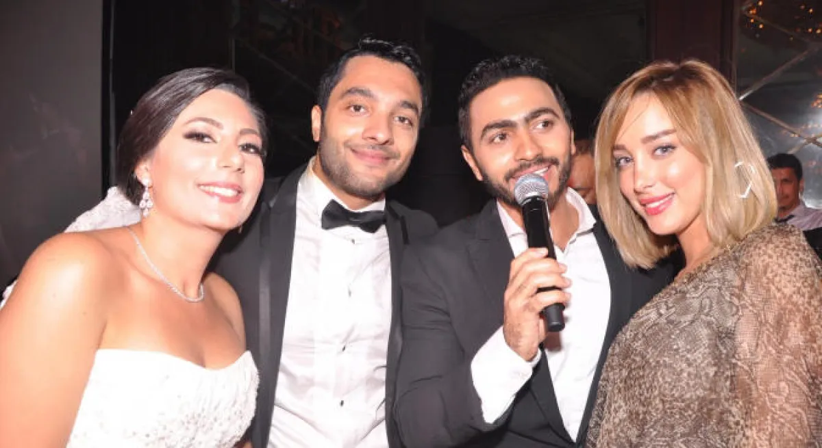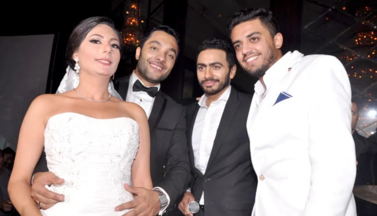 تامر حسني لم يكتفِ بالحضور، بل قام بالغناء للعروسين، كما غنى لحبيبته وزوجته بسمة بوسيل، في حين قام بإحياء حفلة الزفاف التي أقيمت في فندق كونراد أعضاء فريق 8%: أوكا وأورتيجا وشحتة كاريكا.