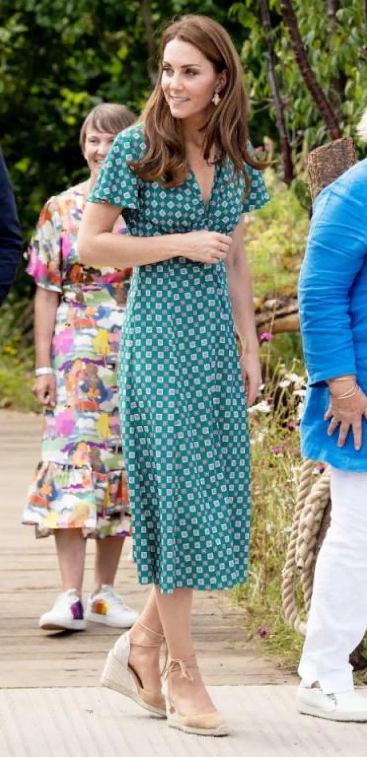 حضرت كيت ميدلتون نهائي بطولة ويمبلدون للسيدات، برفقة بيبا ميدلتون وميغان ماركل، مرتدية فستان ميدي أخضر مزينًا بأزرار أمامية، بتوقيع دولتشي آند غابانا Dolce & Gabbana مع زوج من أحذية الـ pump ، وحملت حقيبة بمقبض علوي.