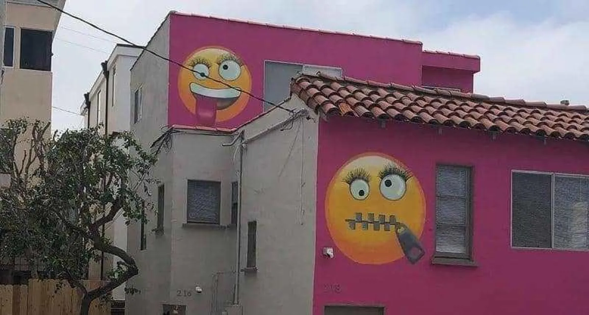 وقال الجيران إن رسم الإيموجي على واجهة المنزل بعد طلائه باللون الوردي يقصد منه السخرية منهم، خصوصاً أن الوجوه التعبيرية تفيد بأمرين اثنين، أحدهما يطالب بالصمت (إغلاق الفم بسحاب) والثاني السخرية والاستهزاء (اللسان يخرج من الفم).