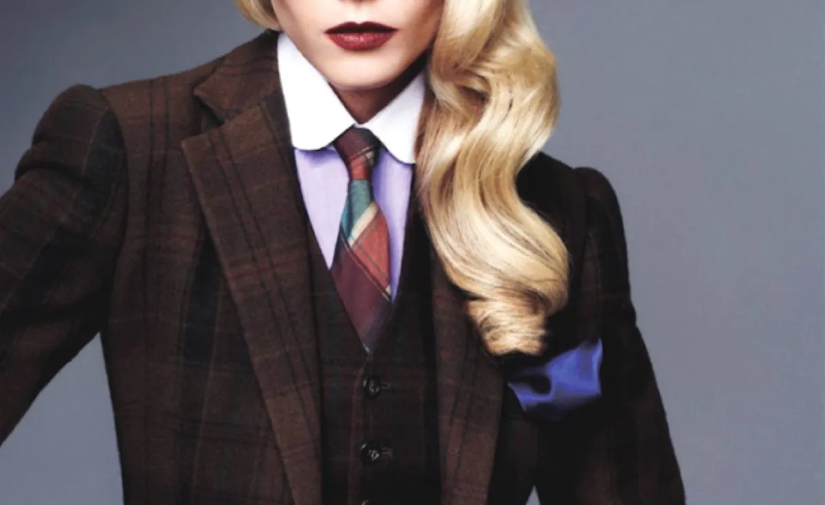كثيرًا ما ظهرت النجمة العالمية أنجلينا جولي بالبدلة الرجالية، مع اللمسات الأنثوية الخاصة بها، كما أنها تعدّ من أفضل النجمات اللواتي تألقن بالبدلة على السجادة الحمراء.