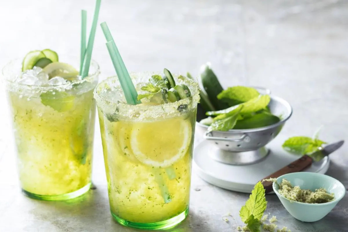 • المكوّنات: حبَّة من الخيار مُقطَّعة إلى حلقات، و3 أعواد من الكرفس الطازج، و5 أعواد من البقدونس، و3 شرائح من الأناناس (يمكن استبدال شرائح الجريب فروت أو البرتقال أو الليمون بها).