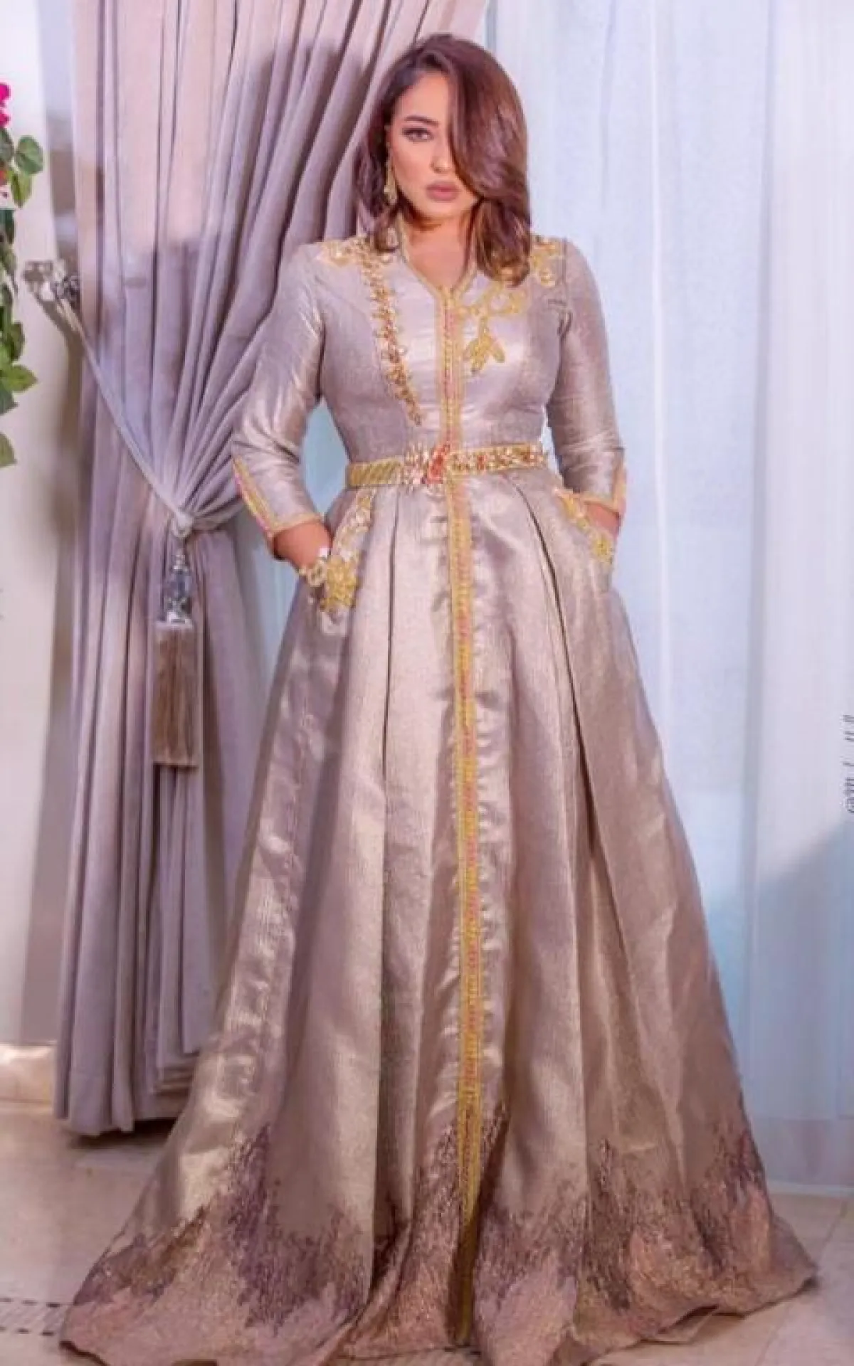 بينما اختارت الفنانة جميلة البداوي قفطانًا أزرق بنقوش سكرية، وحزام خصر، وارتدت قفطانًا فضيًا بتطريزات ذهبية.