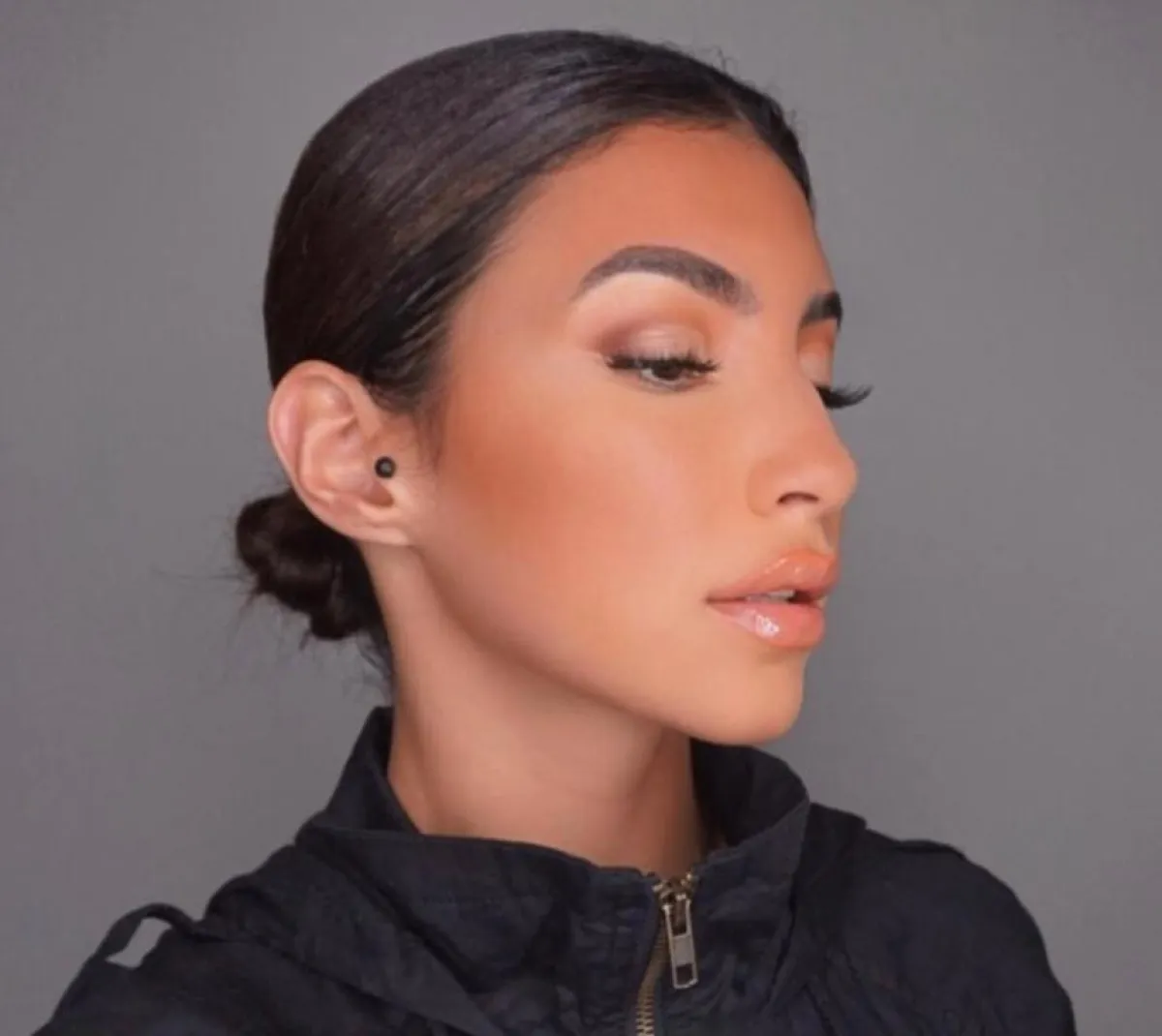 وأطلت بـ مكياج عين بني ورسمت نقشة نمرية بلمعة فضية على شكل الكحل "الأيلاينر"، مع أحمر خدود باللون البني وطلاء شفاه أحمر، وتجملت بمكياج بني داكن في شفتيها وعينيها، ووضعت كحلًا مسحوبًا باللون الأسود، وماسكرا للرموش، واختارت في اطلالة أخرى طلاء شفاه باللون المشمشي، وأحمر خدين باللون نفسه، مع ظل جفون بدرجات اللون البني.