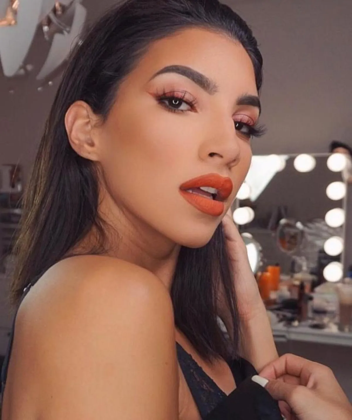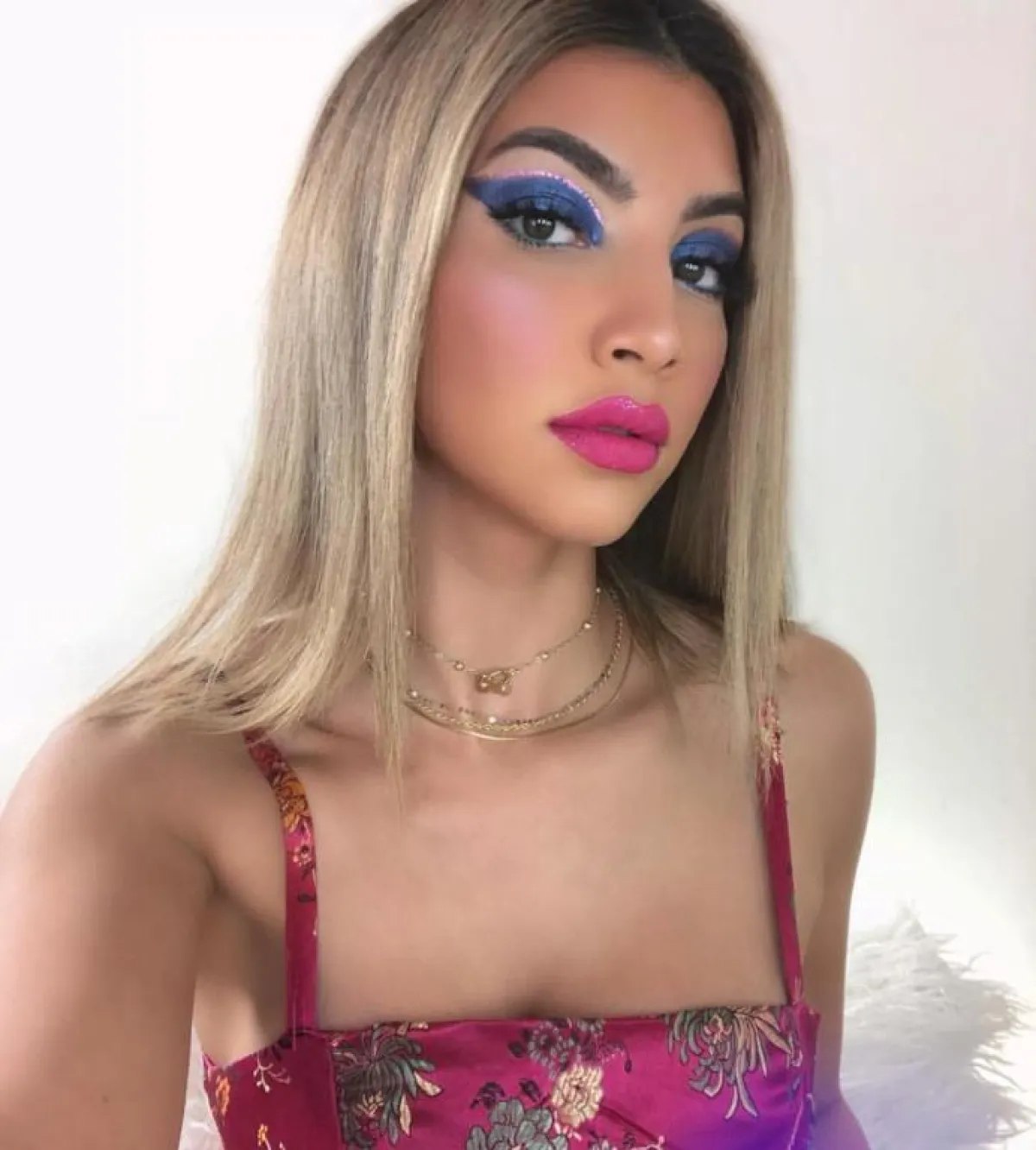 ولاطلالة عصرية اختارت طلاء شفاه باللون البني، وظلال جفون أخضر، ولوَّنت أسفل حاجبيها باللون الأصفر، واستخدمت رموشًا اصطناعية وأحمر خدين باللون البني، كما ظهرت بشفاه لامعة باللون الفوشيا، وزينت عينيها بلمعة زهرية، وفي مدمع العين وضعت كحلًا يميل للون الأصفر، وأكملته في آخر العين، وزينت شفتيها باللون البرتقالي وكذلك خديها، ووضعت درجات اللون البرتقالي على عينيها، واستخدمت قلم كحل سائل، مسحوب باللون البرتقالي، وتجملت بظل جفون أزرق مسحوب، وكحل أزرق داخلي، وأعلى كسرة العين تجملت بلمعة زهرية، مع أحمر خدين وطلاء شفاه باللون الفوشيا.