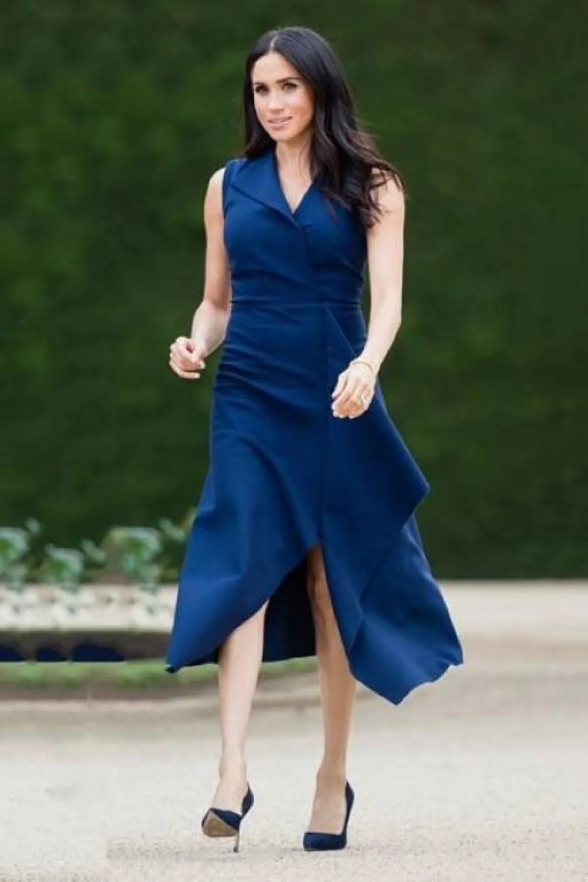عند لقائها بـ الأمير هاري، وبعد ارتباطهما مايو 2018، كل شيء تغير. ارتقت ميغان ماركل بحسّها وأسلوبها في الأزياء، فنقلتها نحو العالم الملوكي صقلت من مفهومها لعالم الموضة، فبدأت باختيار القصات الأكثر كلاسيكية، ومعاطف الترانش. كما أنها وخلال المناسبات المسائية بدأت بارتداء فساتين كوكتيل مميزة، كتصميم جايسون وو الشهير الذي ارتدته في افتتاح عرض فيلم The Lion King في لندن.