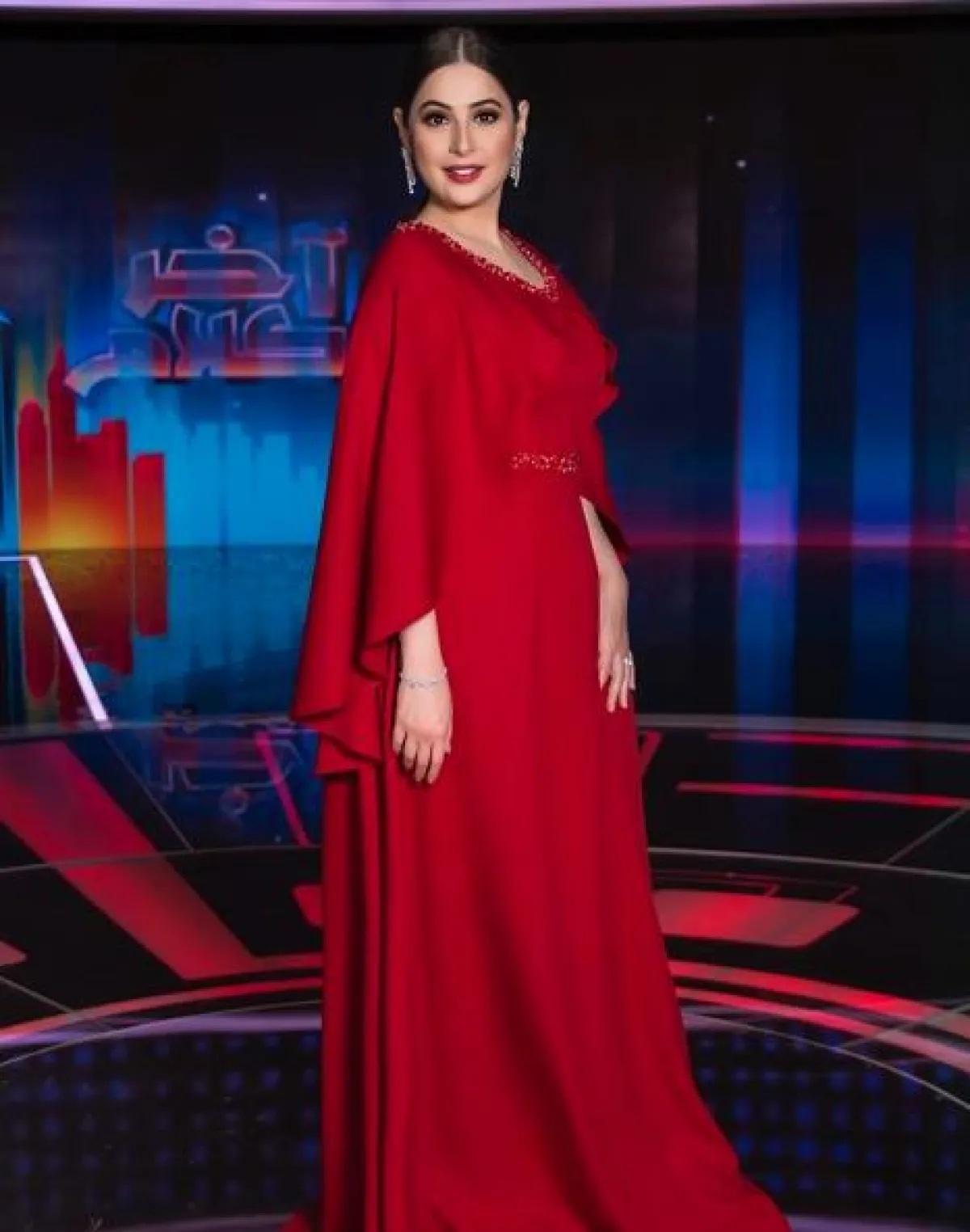 اطلالة لافتة في فستان أحمر اعتمدتها رؤى الصبان