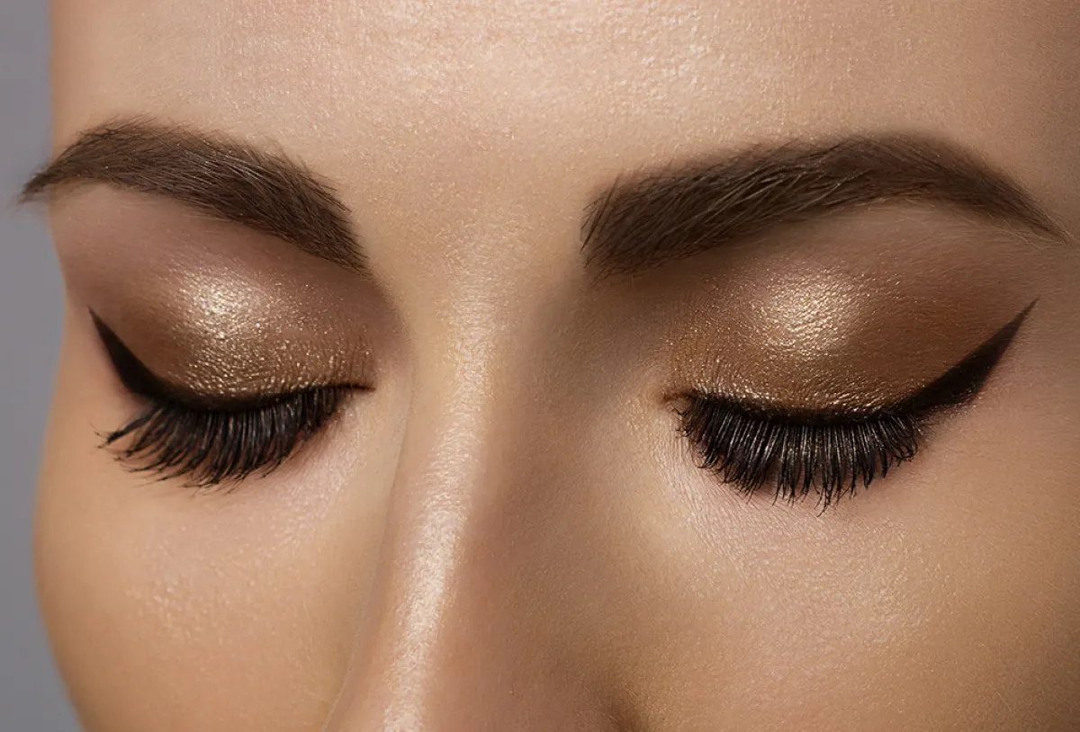اختاري أيلاينر بتركيبة سائلة لترسمي خطاً مجنحاً على حدود الرموش العليا. لا تعتمدي الخط العريض لأن الهدف هو إبراز الظلال الذهبية.