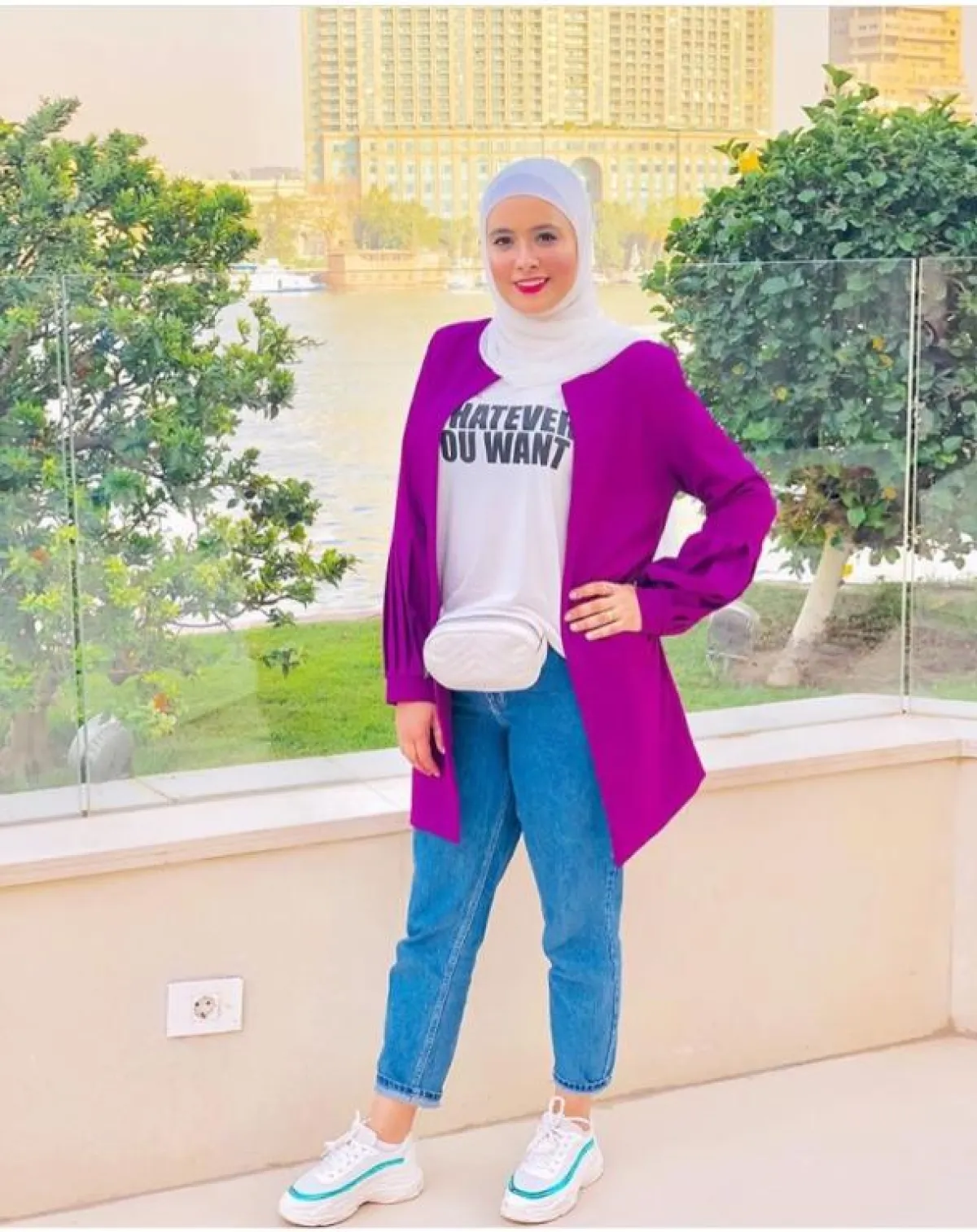 الألوان الهادئة والناعمة تناسب الكثير من القطع لديك، خاصة مع ألوان الصيف، كهذا الموديل من الفاشينيستا سمر سليم مع البنطلون الجينز الواسع، والتوب الأبيض القصير، لإطلالة مناسبة للصبايا المراهقات، خاصة عندما أكملت اللوك بالسنيكرز الأبيض.