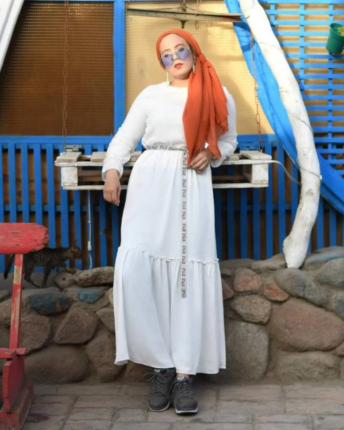 طريقة تنسيق الفستان الابيض مع الحجاب:
