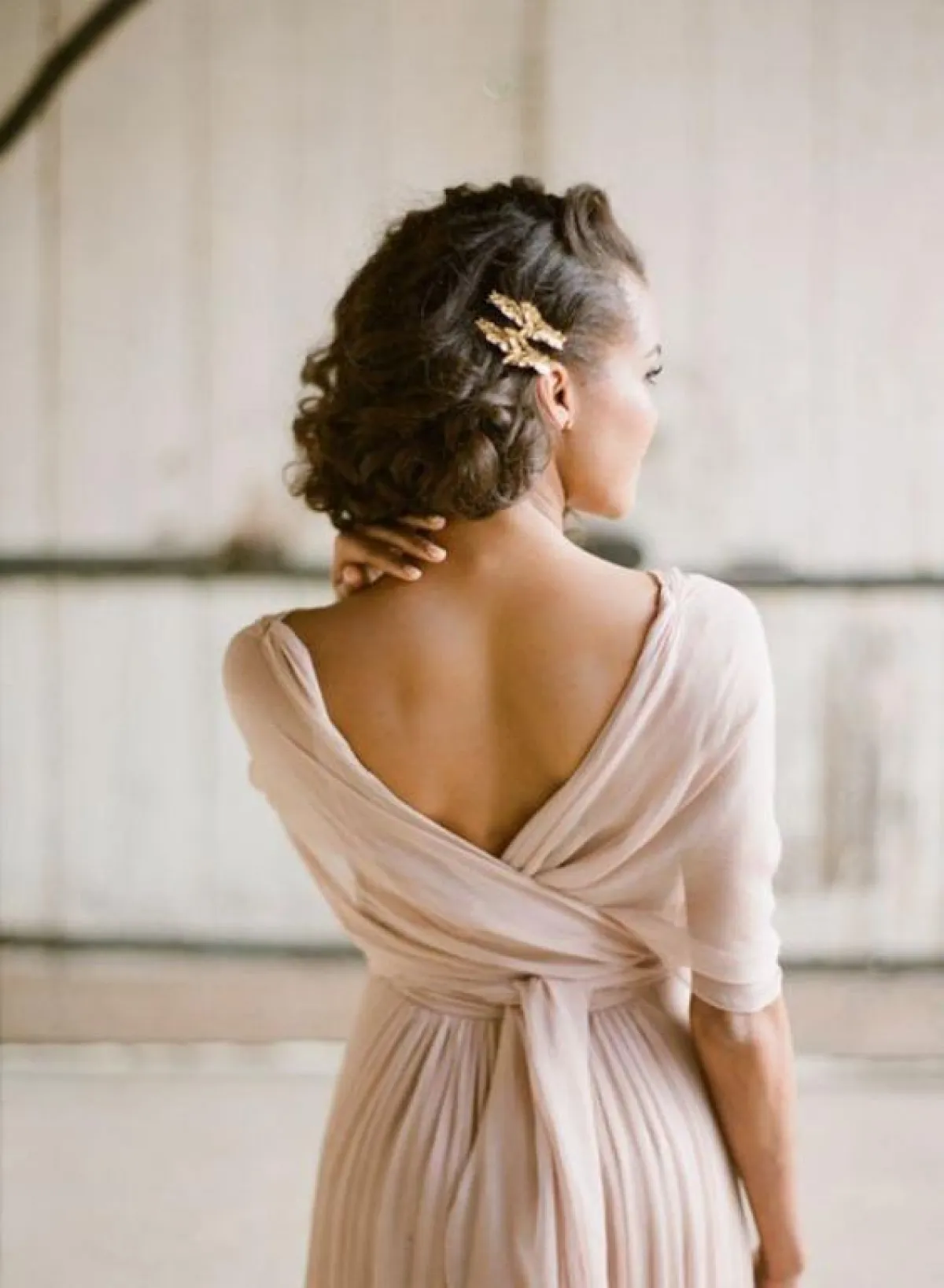 تسريحة الشعر المرفوع على شكل فيونكة للعروس المرحة
