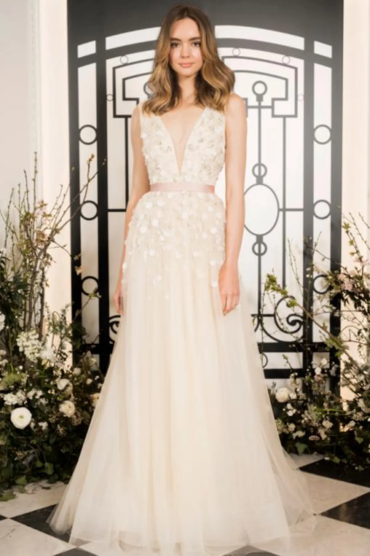 موضة الفساتين التول، واحدة من أكثر الصيحات الرائجة التي شاهدناها خلال أسبوع الموضة للعروس لربيع 2019، والتي أبدع بها مصممو الأزياء بتصميمات فساتين زفاف من التول بأفكار مختلفة ومميزة، شاهدنا فيها التول المنفوش، والذيل الطويل من التول، وأيضًا التول الملون.