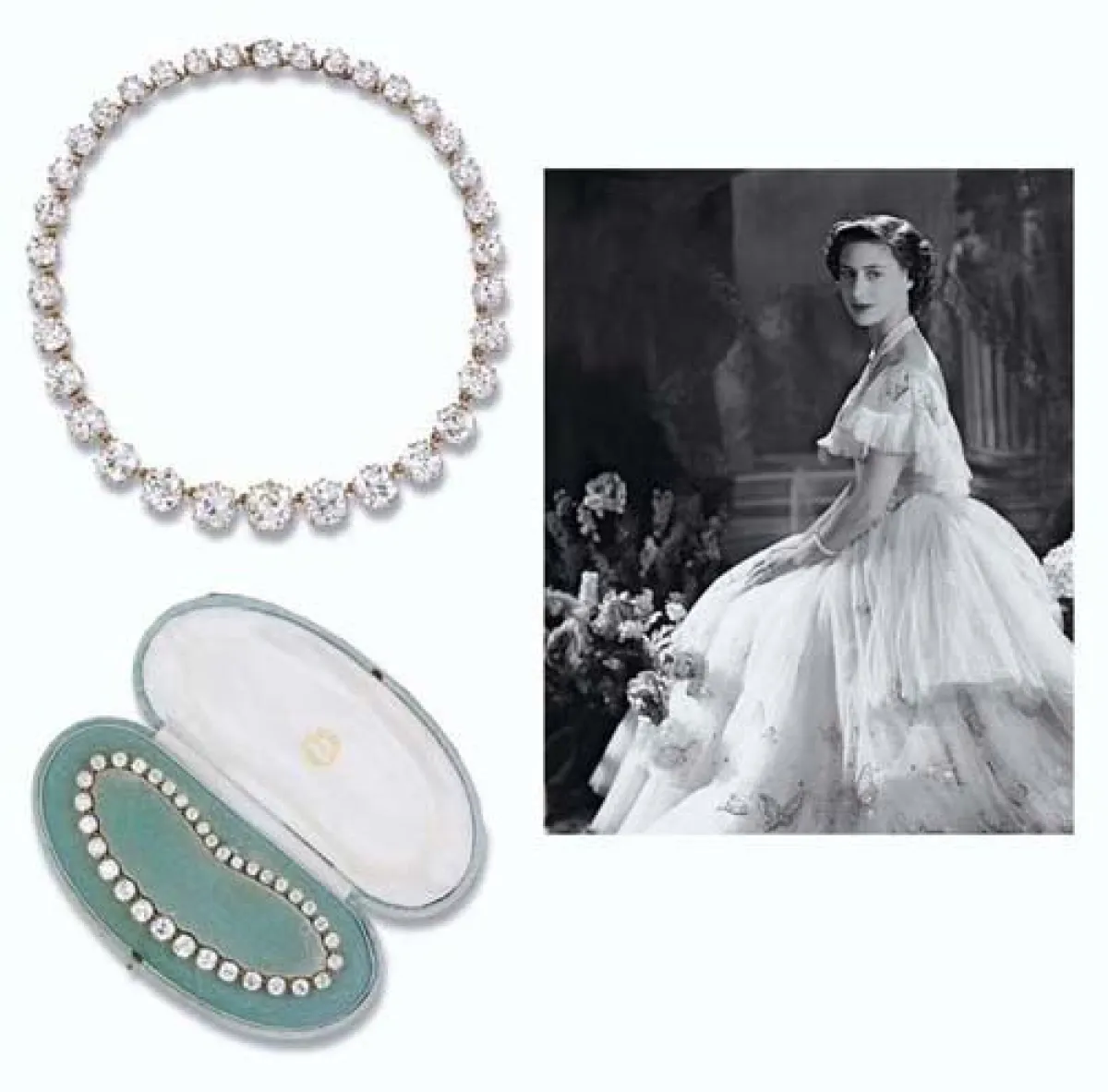 هذا الطوق المصوغ بالذهب والفضّة يأتي على شكل صفّ مكوّن من 34 ماسة، وكان ملكاً للملكة البريطانيّة ماري، أهدته لاحقاً لحفيدتها الأميرة مارغريت. بيع الطوق في مزاد علنيّ لدى Christie’s لقاء مبلغ 993.600 جنيهاً إسترلينيّاً.