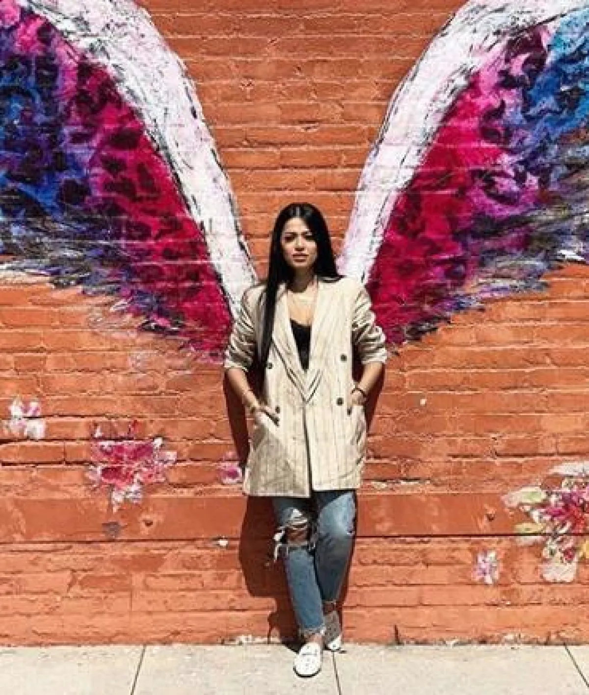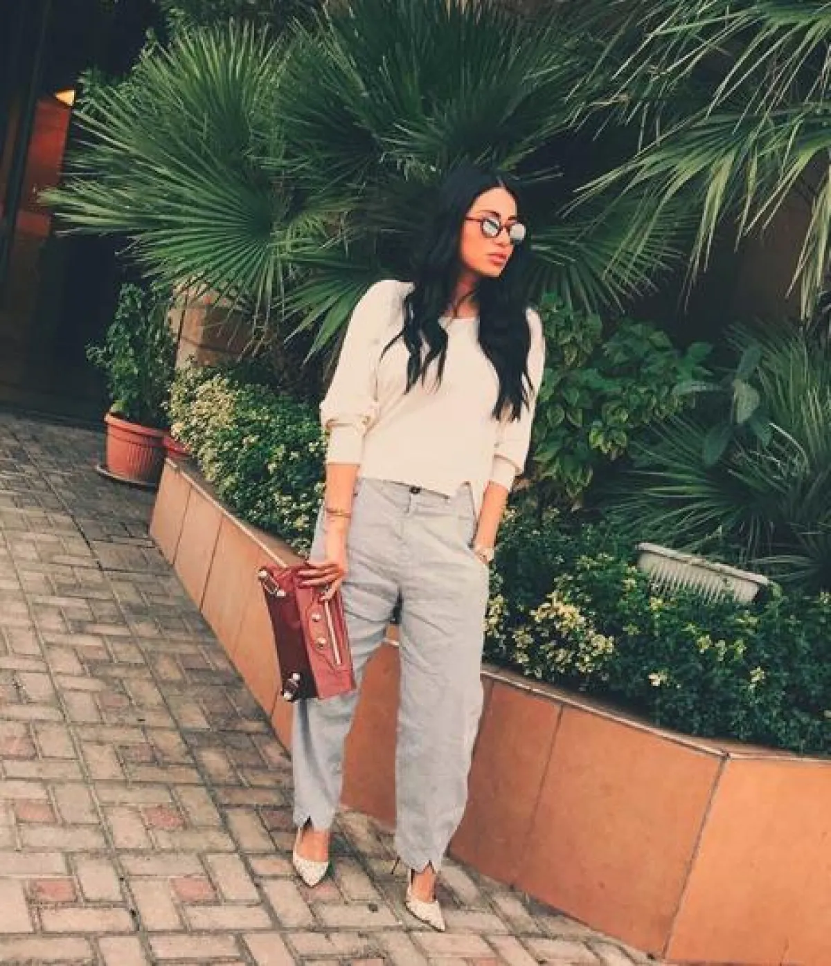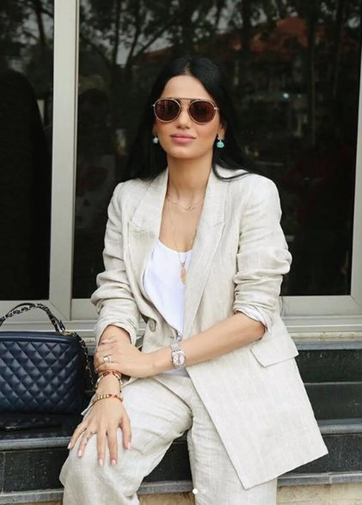 البدلات الرسمية إحدى أبرز صيحات الموضة لهذا الموسم، وقد شاهدنا عددا كبيرا من النجمات العالميات والعربيات وقد اعتمدن هذه الموضة لمختلف المناسبات، ومنهن رحمة رياض التي اعتمدتها لمشوار صباحي كاجوال. وقد اختارتها باللون البيج الفاتح، ونسقت من تحتها توب باللون الأبيض، وأكملت اللوك ببعض المجوهرات الذهبية ونظارات شمسية بقصة “الطيار” وحقيبة يد أنيقة من الجلد الأسود.
