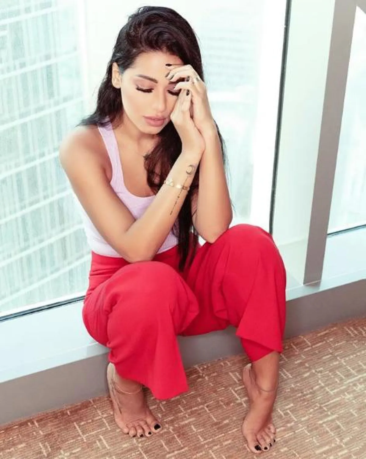 رحمة رياض في بدلة باللون البيج
