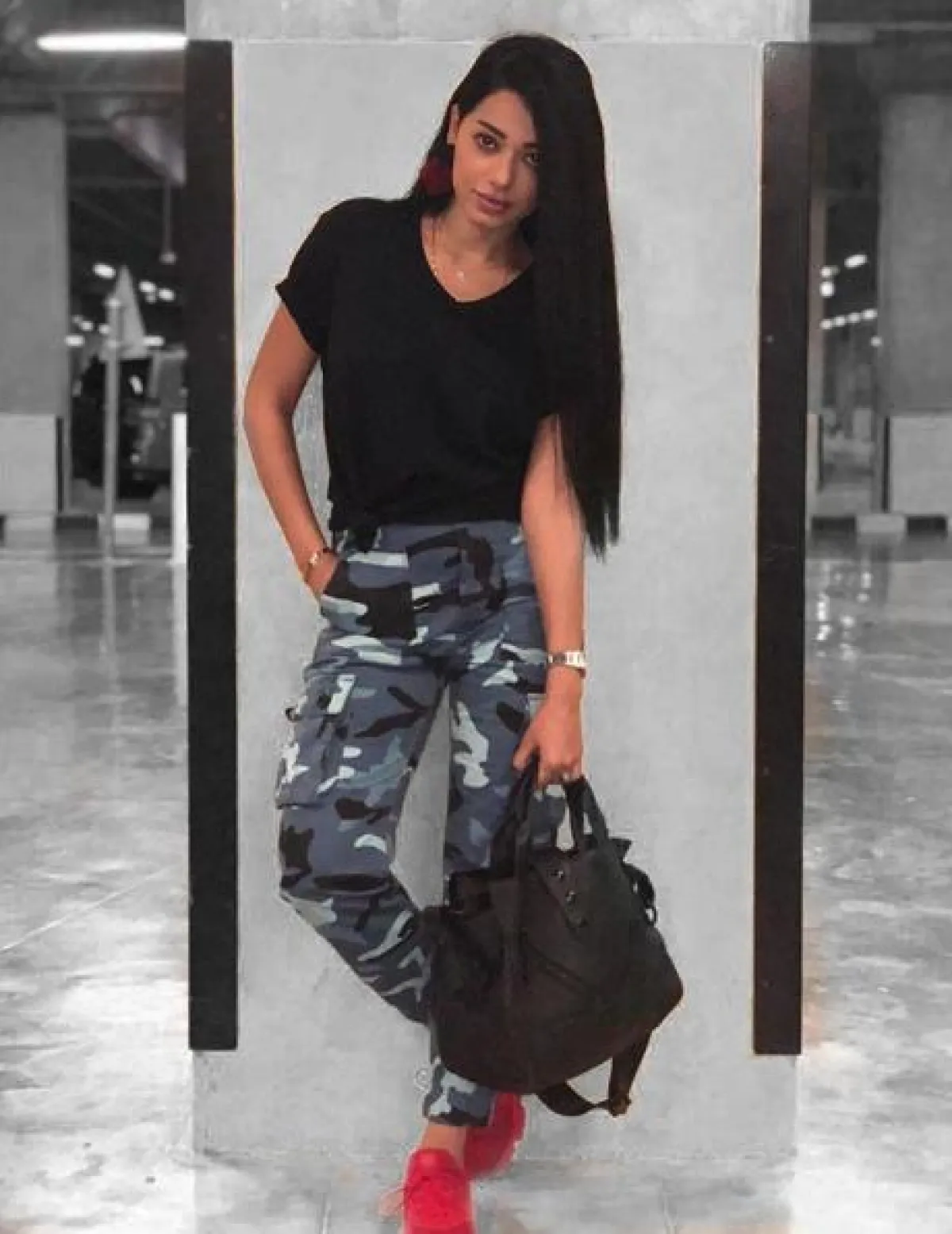 الأسلوب العصري الشبابي سيطر على إطلالات رحمة رياض مؤخراً، وأصبحنا نراها في أحدث صيحات الموضة، مثل هذا اللوك ذي الطابع الرياضي الذي اختارت فيه شورت قطنيا ضيقا باللون الأسود، نسقت معه قميصا باللون الزهري وحذاء رياضيا عمليا باللون الأبيض ونظارات شمسية كبيرة.