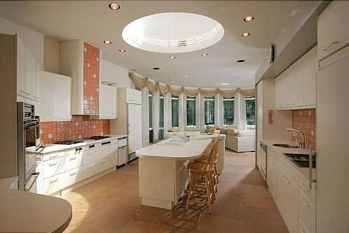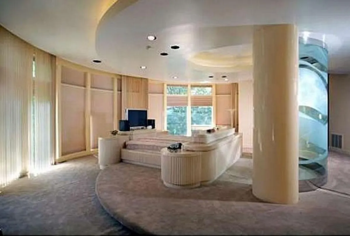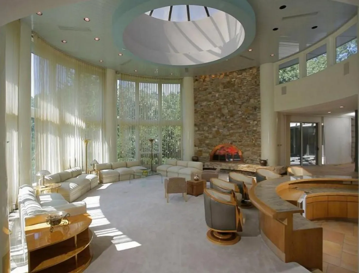 بُني هذا المنزل سنة 1992، ويمتدّ على مساحة 12,561 قدماً مربّعاً، ويضمّ 5 غرف نوم و4 حمّامات. وتتألف واجهاته من الزجاج الذي يمتدّ من الأرض حتى السقف، ليوفّر إطلالة مباشرة على الحديقة الخضراء المزروعة بالأشجار العالية والمُزيّنة بأنواع النباتات المختلفة.