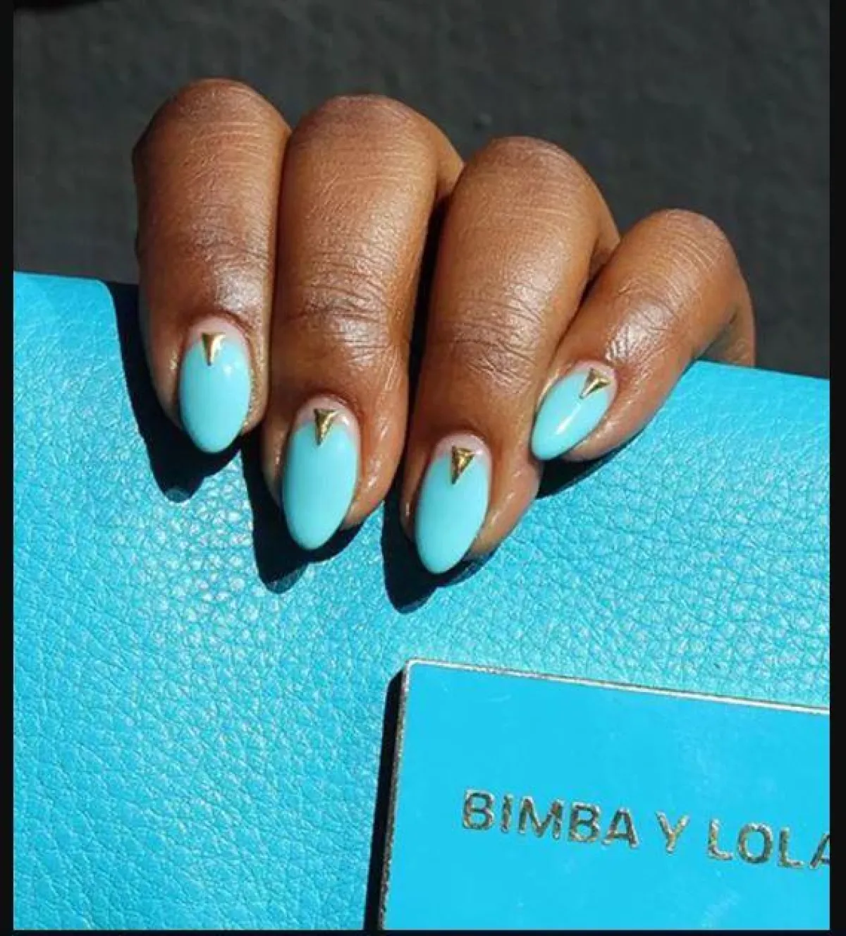 الازرق: لا تترددي لحظة قبل اختيار هذه الدرجة الزاهية من الازرق الذي يحاكي لون البحار والمحيطات. يليق هذا المناكير بصاحبات البشرة السمراء لانه يمنحهن لمسة من الحيوية والتألق. فكيف الحل إذا أضفت بعض اللمسات الذهبية كما في الصورة المرفقة؟ المهم هو ان تبتعد صاحبة البشرة الداكنة جدا عن التدرجات الغامقة من الازرق، وان تتجه الى الاطياف الزاهية. يكفي ان تجربي لتلاحظي الفرق.