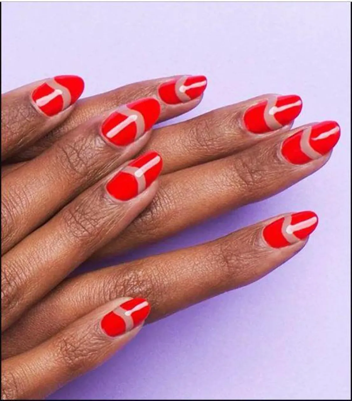 الاحمر النابض: معروف ان المناكير الاحمر، يبقى المناكير الرصين الذي يلبي كل الاذواق ويليق بكل ألوان البشرات. إنه لون كلاسيكي بامتياز، فكيف إذا صار هذا اللون من أحدث صيحات موضة مناكير الاظافر؟ على صاحبة البشرة السمراء ان تختار الاطياف التي تليق بدرجة سمرتها. عموما، كلّما كانت البشرة داكنة، يستحسن الاتجاه صوب التدرجات الزاهية من الاحمر والعكس صحيح. أما اذا أضفتِ خطاً من المناكير الشفاف الى وسط الظفر، فستحصلين على لمسة شخصية، تعبّر عن ذوق رفيع.