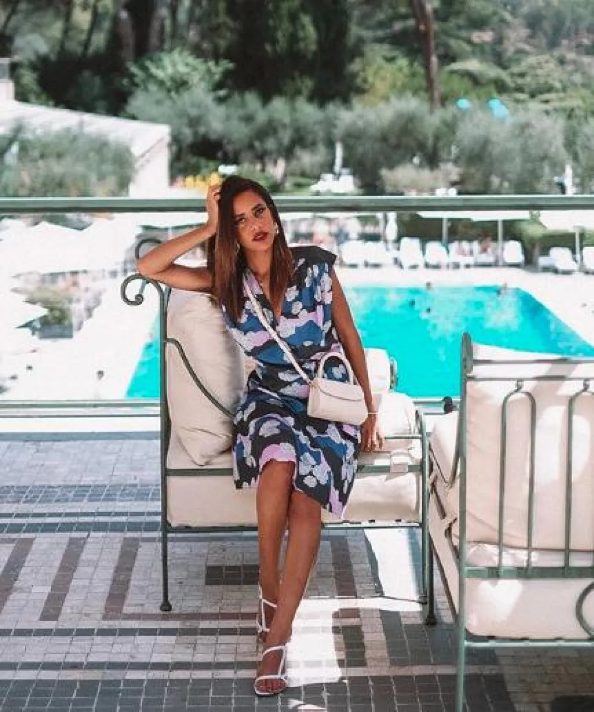 نتالي فنج قضت إجازة عيد الأضحى في مدينة نيس الفرنسية، وقد شاهدناها وقد تألقت في لوك صيفي ناعم، اختارت فيه فستان ماكسي من قماش الحرير معرقًا باللونين الأزرق والأبيض، وقد نسقت معه صندلًا بكعب عالٍ من الجلد الأبيض، وشنطة يد مميزة باللون الأخضر من “كولت غايا” Cult Gaia.