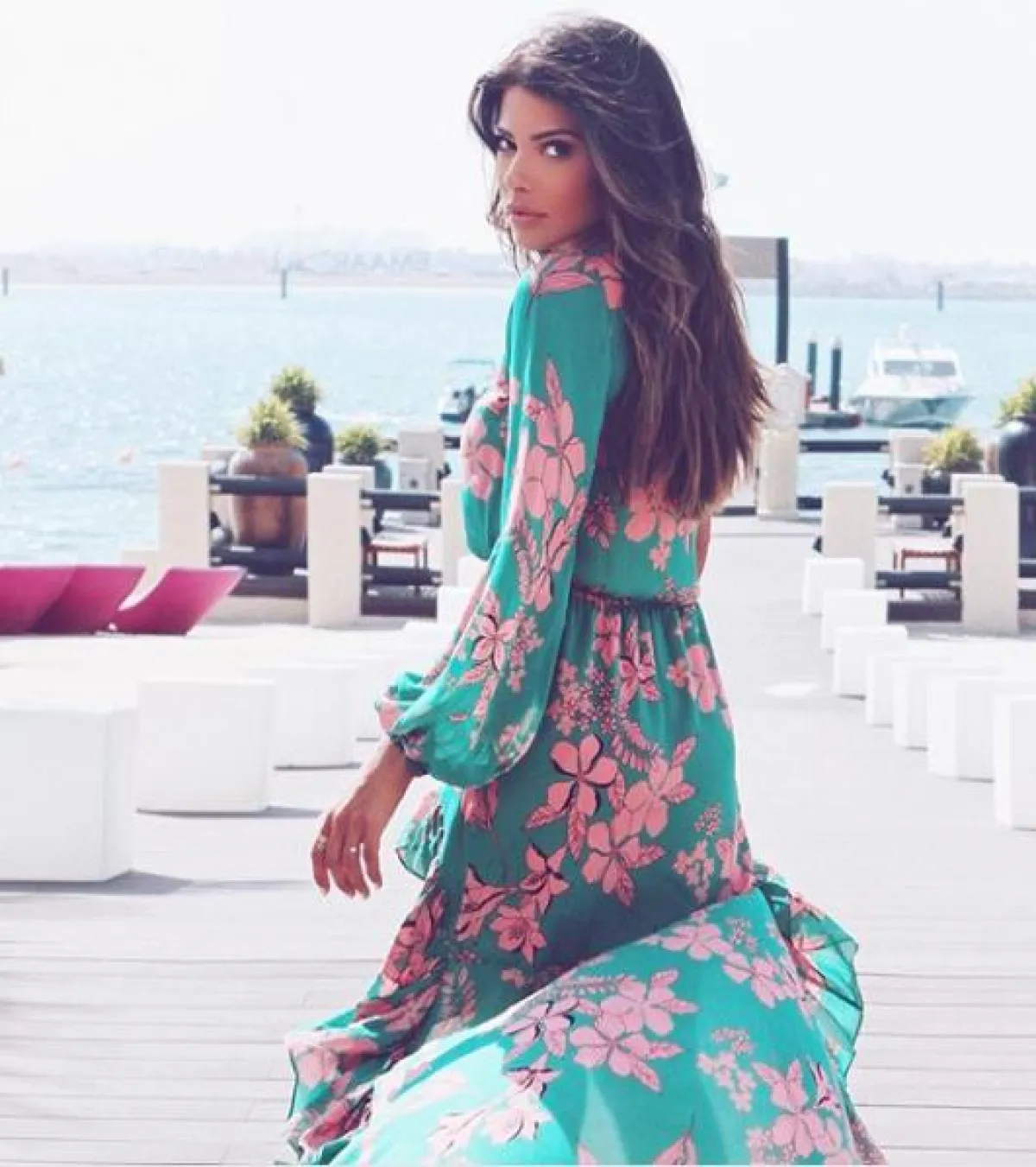 لانا الساحلي في فستان ميدي ميتالك
