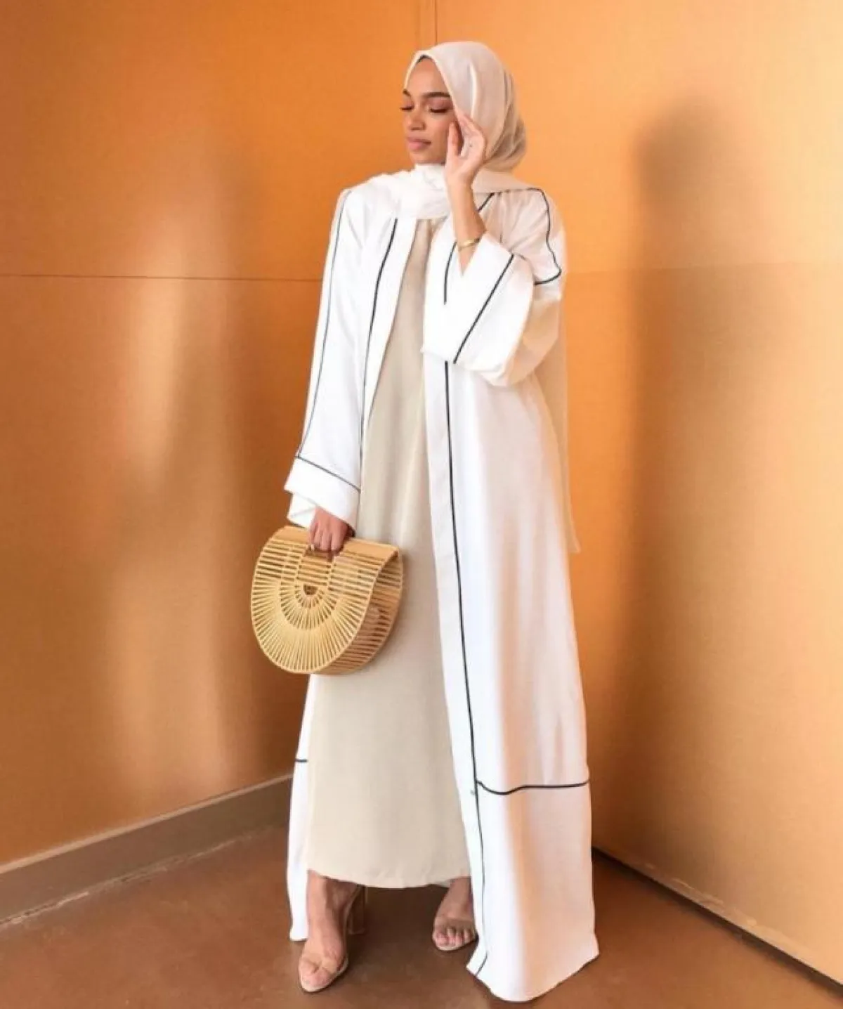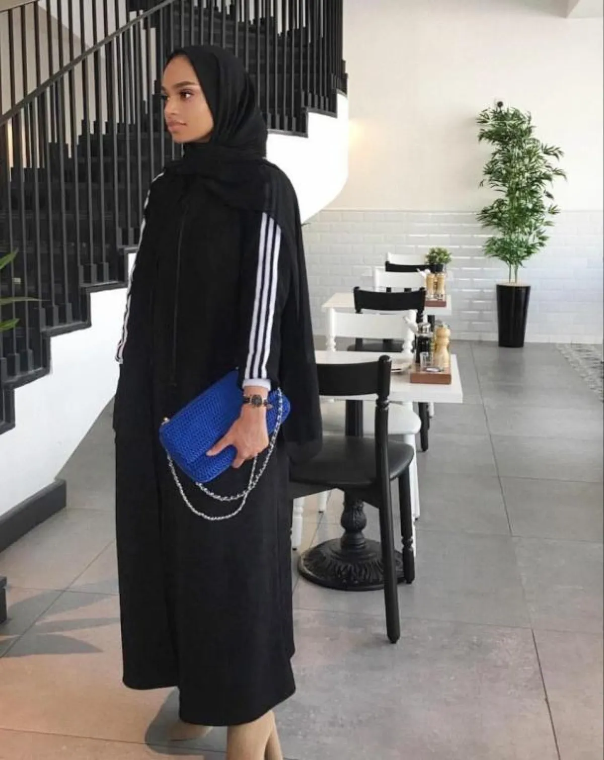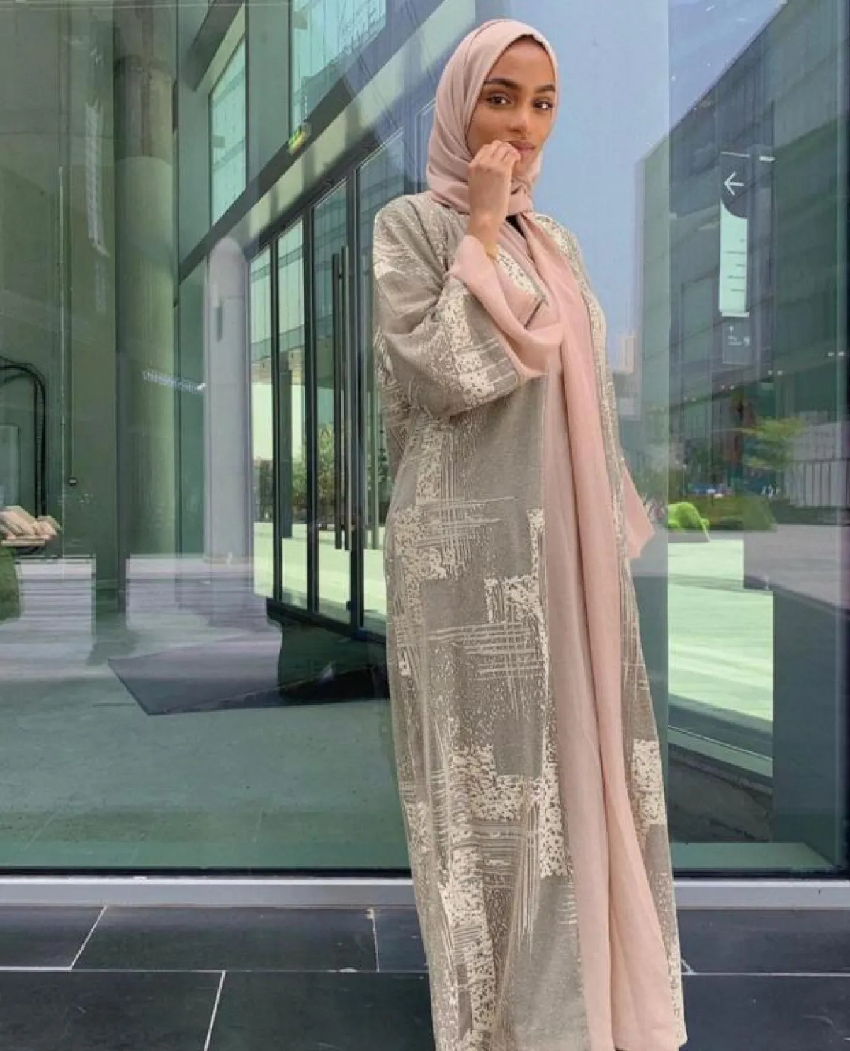 كما تألقت بعباية بيضاء بخطوط سوداء، واختارتْ عباية سوداء واسعة مزينة من الأطراف بزهور ناعمة وأنيقة، وعباية رمادية ناعمة، وأخرى رياضية بخطوط بيضاء من الأكمام.