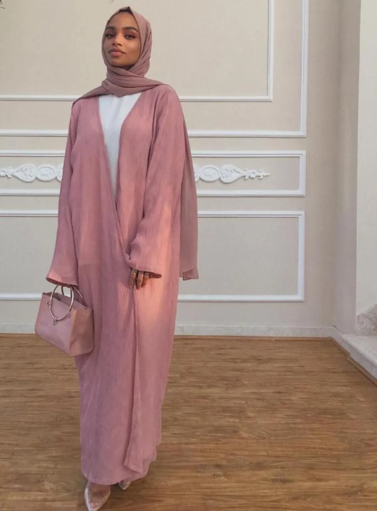 ولعباسة أكثر نعومة، ظهرت بعباية بيج مزينة بفصوص، وعباءة زهرية اللون بنقشات خفيفة، وارتدتْ عباية بيضاء مخطَّطة بالأزرق، وأطلَّت بعباية بدرجة برتقالية مع حجاب بني لكسر اللون، وتجمَّلَتْ بعباية زرقاء بمطاط من الخصر، تزيِّنها قطعة قماش، وعباية زهرية بشراشيب من الأطراف.