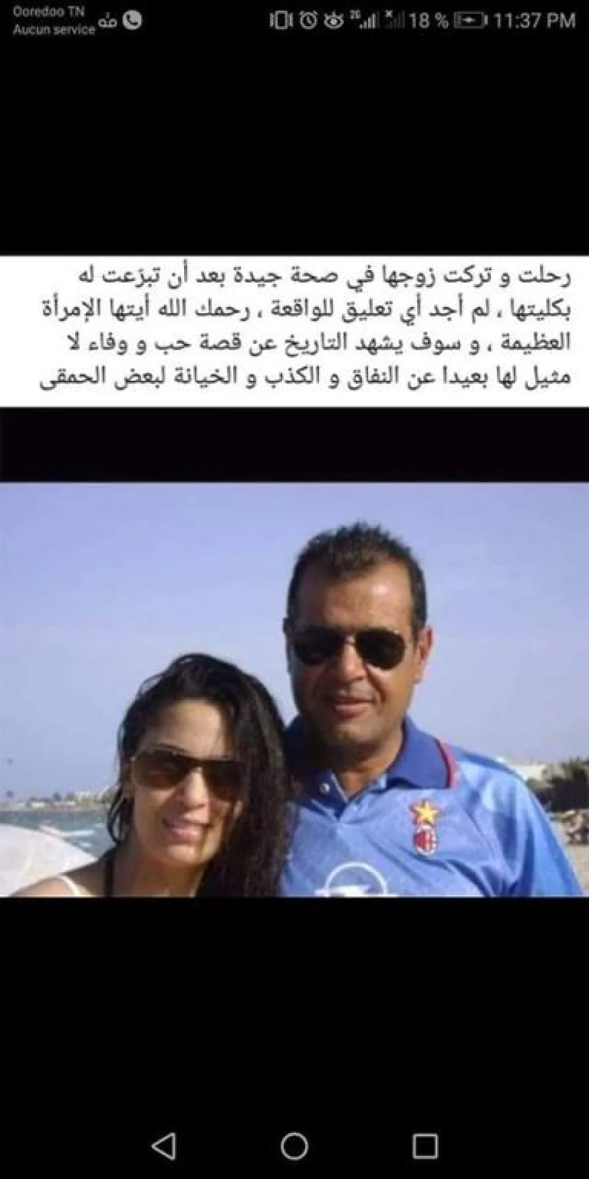 تأثر التونسيّون لخبر وفاة مربية شابة تبرعت بإحدى كليتيها لزوجها وقد وافتها المنيّة بعد شهر من اجرائها العملية في سعي منها لإنقاذ زوجها من أوجاعه وآلامه بسبب معاناته من القصور الكلوي.