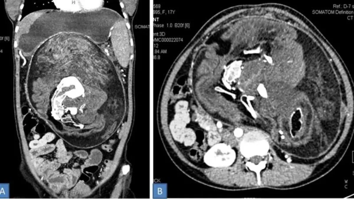 وبدأت محنة المرأة - المفصلة من قبل أطبائها في تقارير بحالة BMJ - قبل خمس سنوات من زيارتها للطبيب، عندها لاحظت هي وعائلتها أنها كانت مصابة بتصلب شديد حول بطنها. وعلى مدار السنوات الخمس التالية، نما حجم الورم تدريجياً وتسبب في ألم بشكل دوري. بحلول الوقت الذي قامت فيه السيدة التي كانت في ذلك الوقت تبلغ من العمر 17 عامًا بزيارة الأطباء، لم تكن قادرة على تناول الكثير من الطعام، على الأرجح لأن الورم قد بدأ يضغط على أعضائها الداخلية.