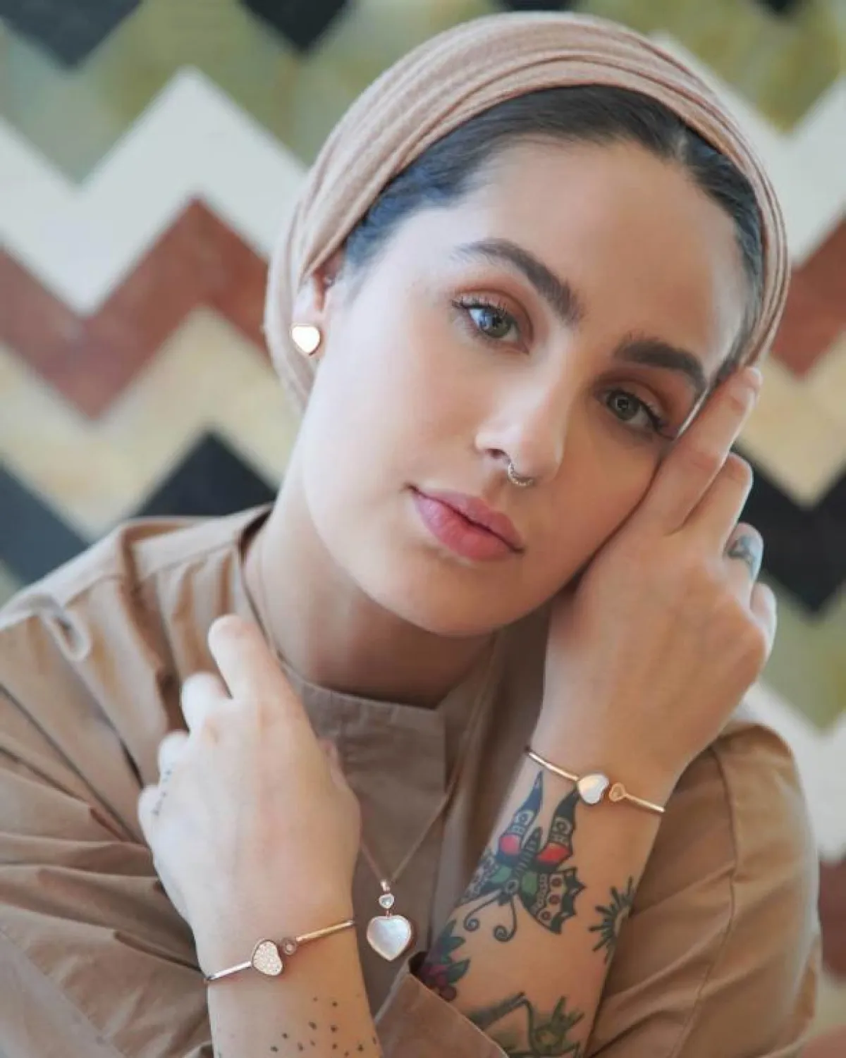 - عند ارتداء أقراط الأذن مع الحجاب، حاولي أن تكون متناغمة معها قدر الإمكان، فالأقراط اللامعة مثلًا تناسب حجابكِ بالألوان الهادئة كالنود، أما الحجاب الملون مع النقوشات، من الممكن أن تنسقي معه أقراطًا بسيطة بأحجام صغيرة، أو من دون الكثير من التفاصيل، حتى لا تبدي متكلفة للغاية.