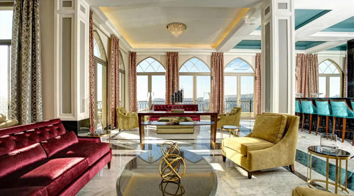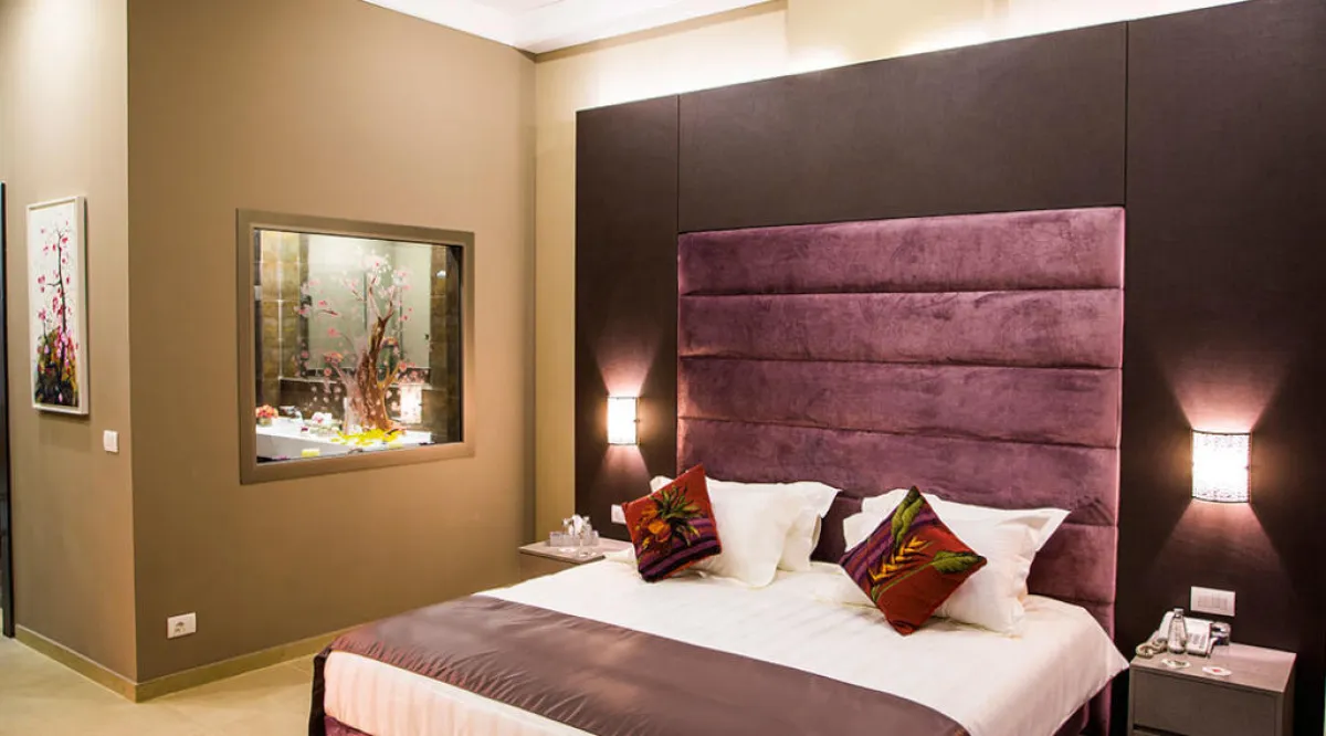 يضم الفندق 23 غرفة نوم وجناحًا، تتضمن جناحًا ملكيًّا وجناحًا عائليًّا وغرفًا، مطلة على وادي لامارتين، وبعضها مع شرفات واسعة، ويتميز أثاثها بالقماش المخملي، والألوان الترابية والدافئة، واللمسات العصرية في أطقم الفيرفورجيه على الشرفات .