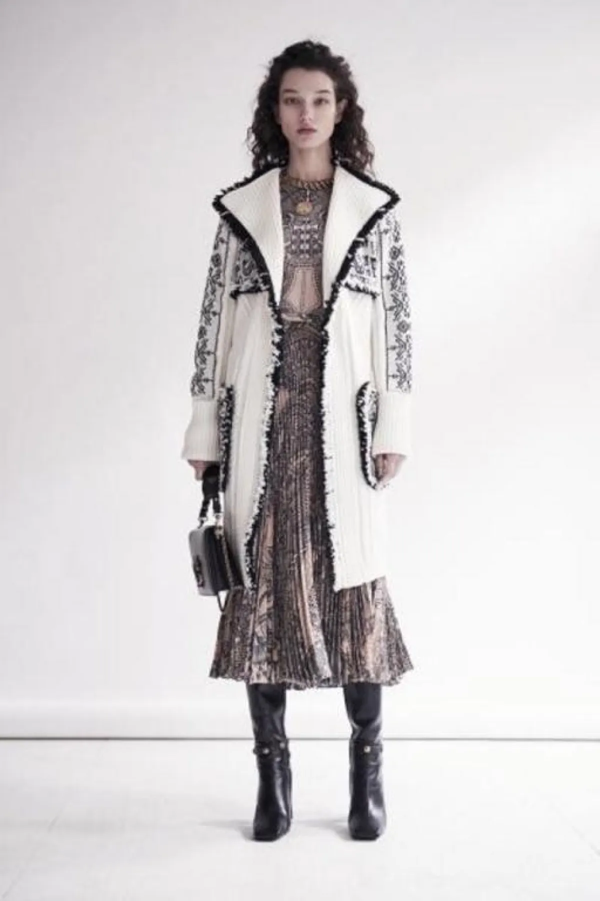 - جربي تنسيق المعطف المونوكروم مع قميص وبنطال فضفاض باللون الأبيض وتممي أناقتك بحقيبة بيضاء أعتمديها عبر الجسم من وحي عارضة ماركة أوسكار دي لا رنتا Oscar de la Renta.