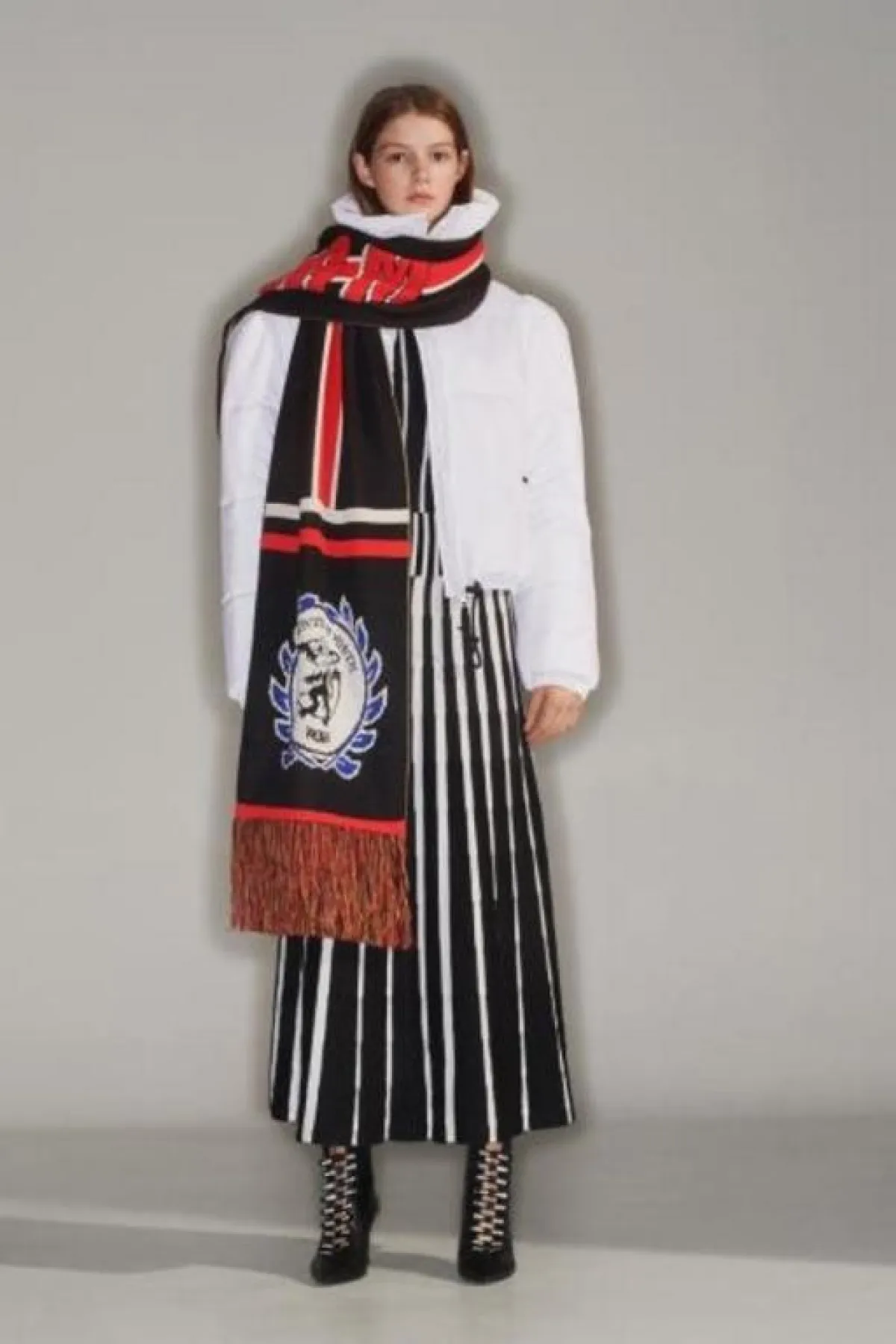 - يعتبر الأكسسوار الأحمر هو الرفيق التقليدي لإطلالة المونوكروم حيث يكسر حيادية الطلة ويكسبها لمسة حيوية وأنثوية راقية، لذا أحرصي على تزيين أزياء المونوكروم بحقيبة أو شال باللون الأحمر على غرار عارضات ماركات Dondup وMSGM.