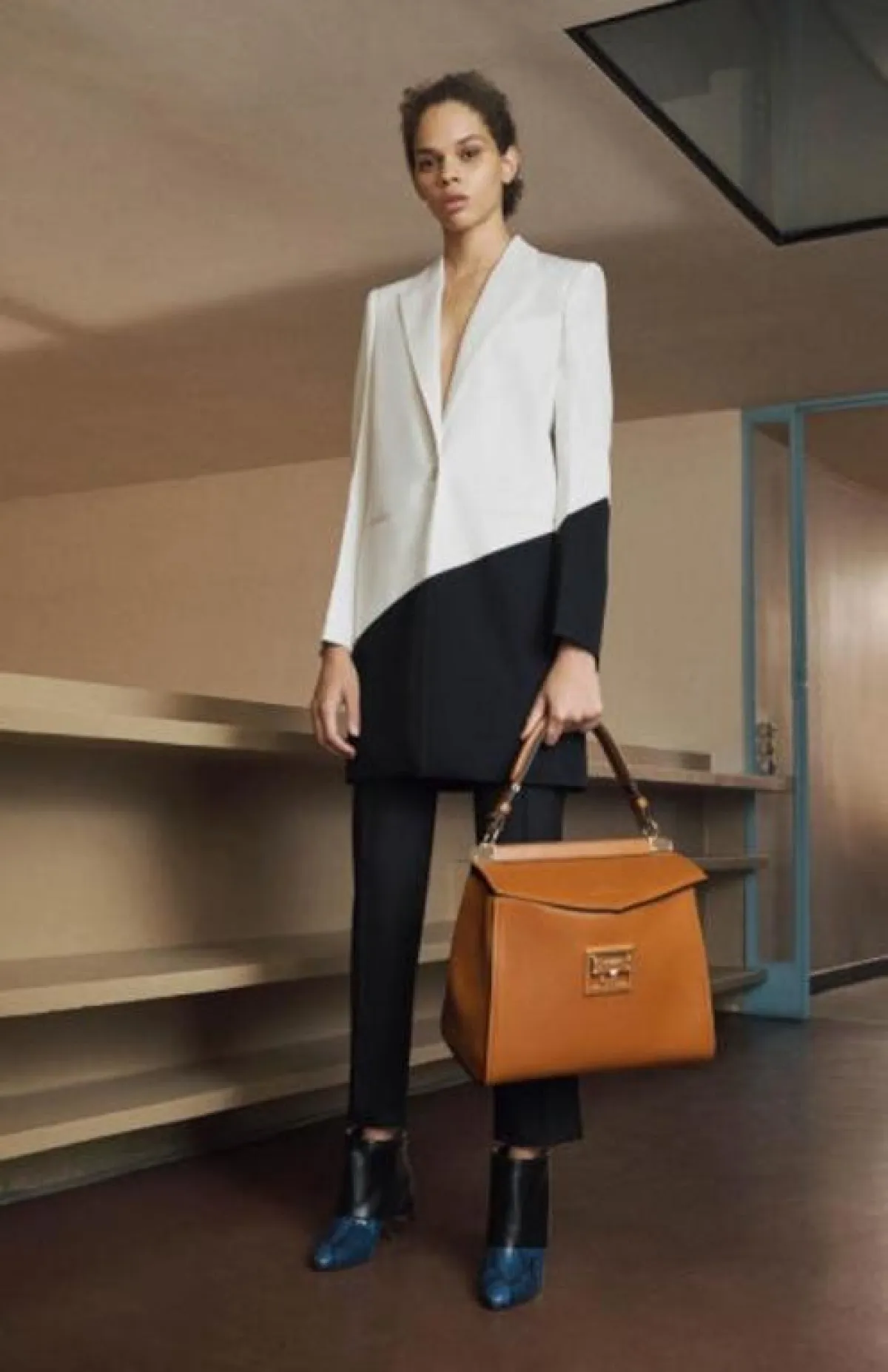 - قدمت دار جيفنشي Givenchy واحدة من أجمل موديلات البدلات الرسمية والتي أعتمدت على المزج الأنيق والغير مزعج للنظر للونين الأبيض والأسود وهى كل ما تحتاجينه لإطلالة على الموضة في المكتب، أكملي اللوك بحقيبة كبيرة باللون الجملي وبوط أو حذاء أسود.