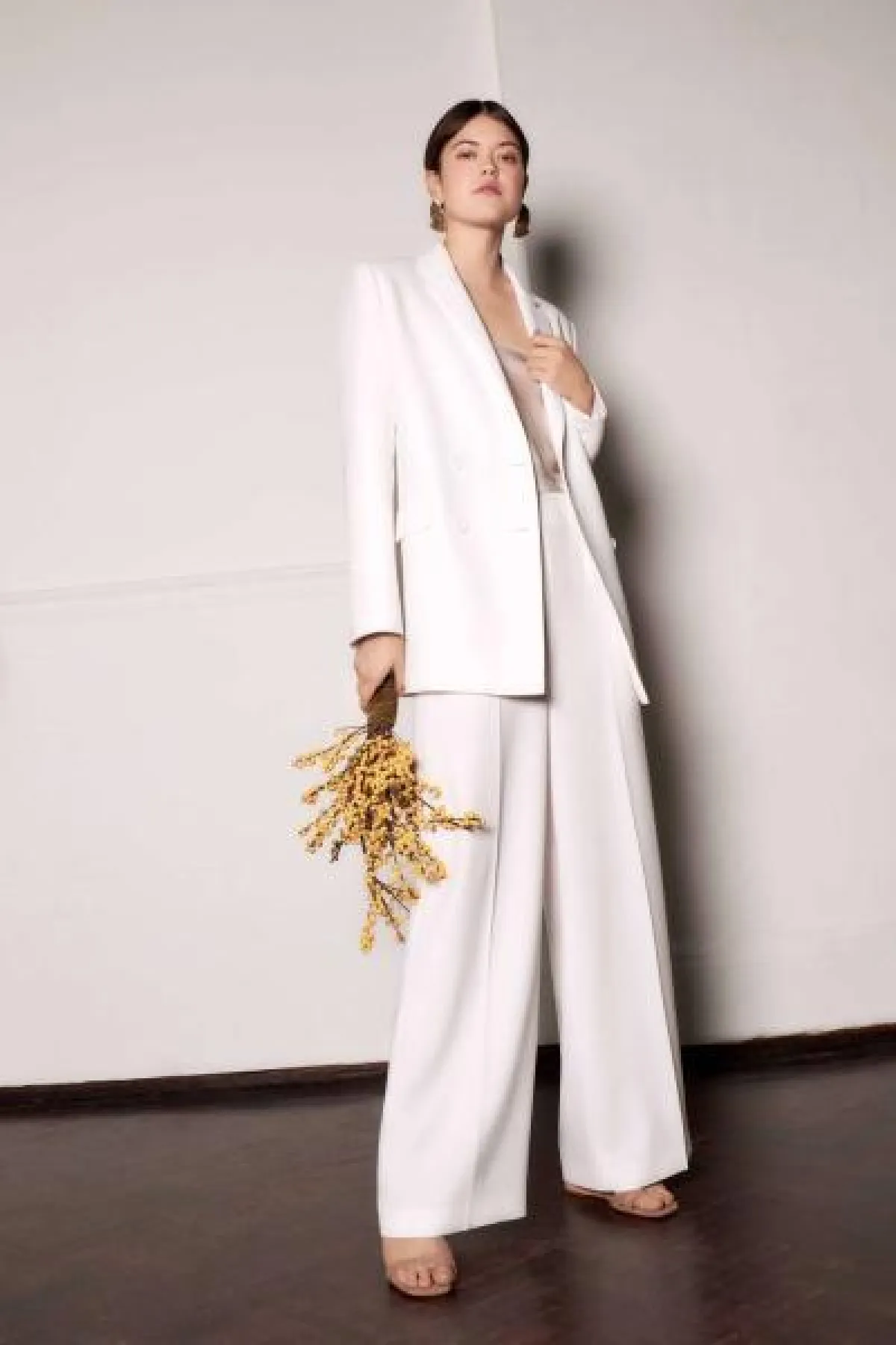 أيضاً قدمت ماركة Danielle Frankel بدلة جبير كلاسيكية راقية مكونة من بليزر طويل وسروال بنفس قماش البدلة.