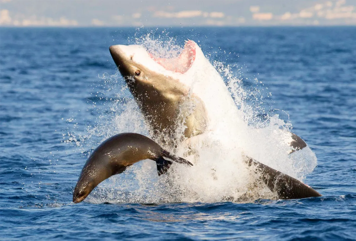 ما يحدث كل يوم في الحياة البرية والبحرية للمخلوقات الأخرى، نعتبره أمراً فريداً وغاية في الغرابة والعجب. وذلك كوننا لا نراه كل يوم، ولا يُتاح لنا أن نلتقط صوراً أو مقاطع الفيديو له إلا نادراً. وعندما نتمكن من مشاهدته تعترينا الدهشة الكاملة لما تراه أعيننا. والمشهد المرعب الذي وقع مصادفة خلال الأيام القليلة الماضية أمام عيون عدد من السياح في خليج «كيب كود» بولاية ماساتشوتس الأمريكية، لسمكة قرش تصطاد وتفترس فقمة غافلة، من بين هذه المشاهد المرعبة والخاطفة للأنفاس.