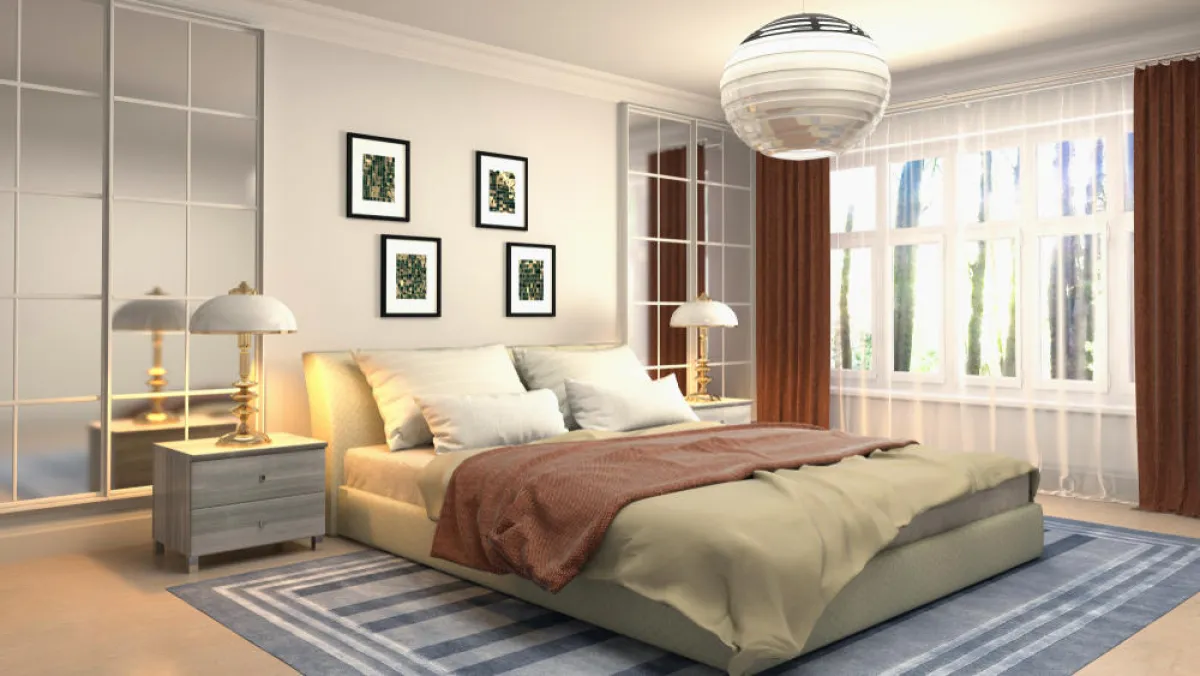 • يُمكن وضع السرير المزدوج في وسط الغرفة، على أن توزَّع حوله الخزائن الخشب. على جانبيِّ الجدار، تُثبَّت خزانة بالطول، وفوقها تُوزَّع خزائن صغيرة، مع اختيار المقابض الطويلة، والخالية من الزخرفات لها. ويحلو إكساء الفراغ الذي يبقى في الجدار بورق الجدران أو الحجر أو الخشب، أو حتَّى تمييزه بالطلاء. ويُمكن اختيار السرير، منجّدًا بالقماش أو معدًّا من الخشب أو الخشب المُغطَّى بالمرايا.