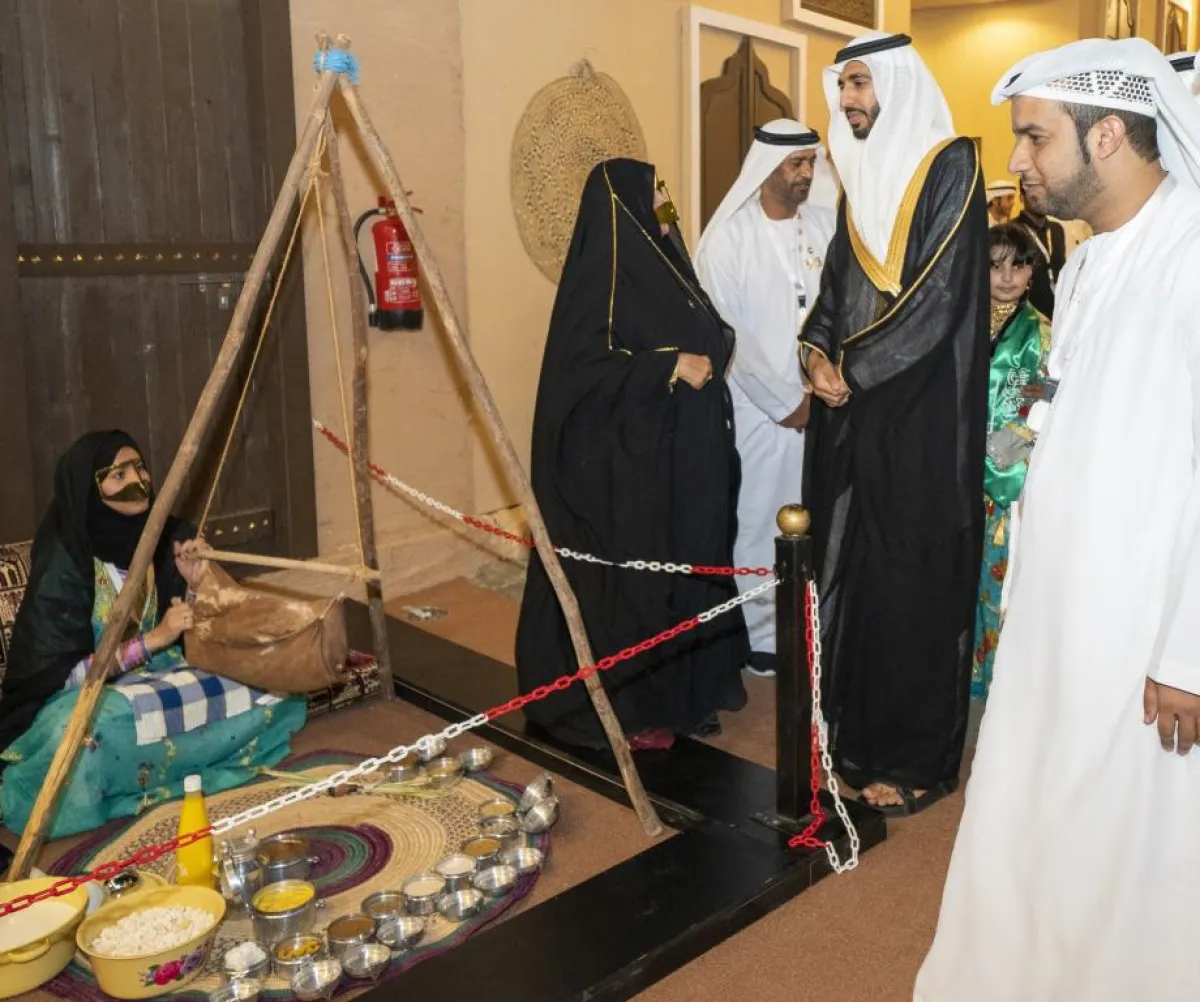 واسمتع الأمير خالد الفيصل خلال جولته في أركان جناح الإمارات إلى شرح مفصل عن القرية التراثية التي تقام كجزء من جناح دولة الإمارات وتعكس صورة مشرقة عن الماضي العريق لدولة الإمارات، وتجسد حياة الآباء والأجداد، وتسلط الضوء على أهم الحرف والصناعات التي كانت سائدة في ذلك الوقت، كما يضم جناح الإمارات ركناً للأسر المنتجة تعرض مجموعة من الأعمال اليدوية المبدعة والتي تقوم على استثمار طاقات الأسر ومواهبهم في الارتقاء بأفكارهم من خلال صناعة منتجات جديدة.