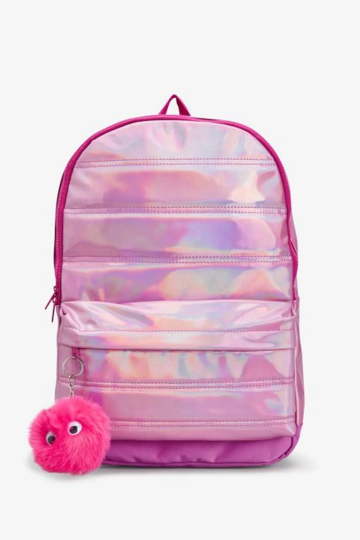 - حقيبة للبنات باللون الوردي مع ميدالية منفوشة باللون الفوشي بسعر 109 ريالات.