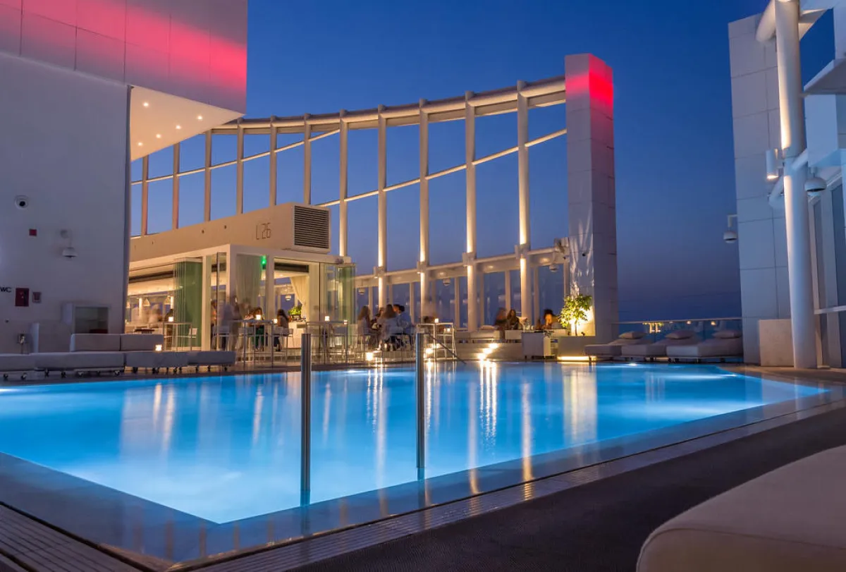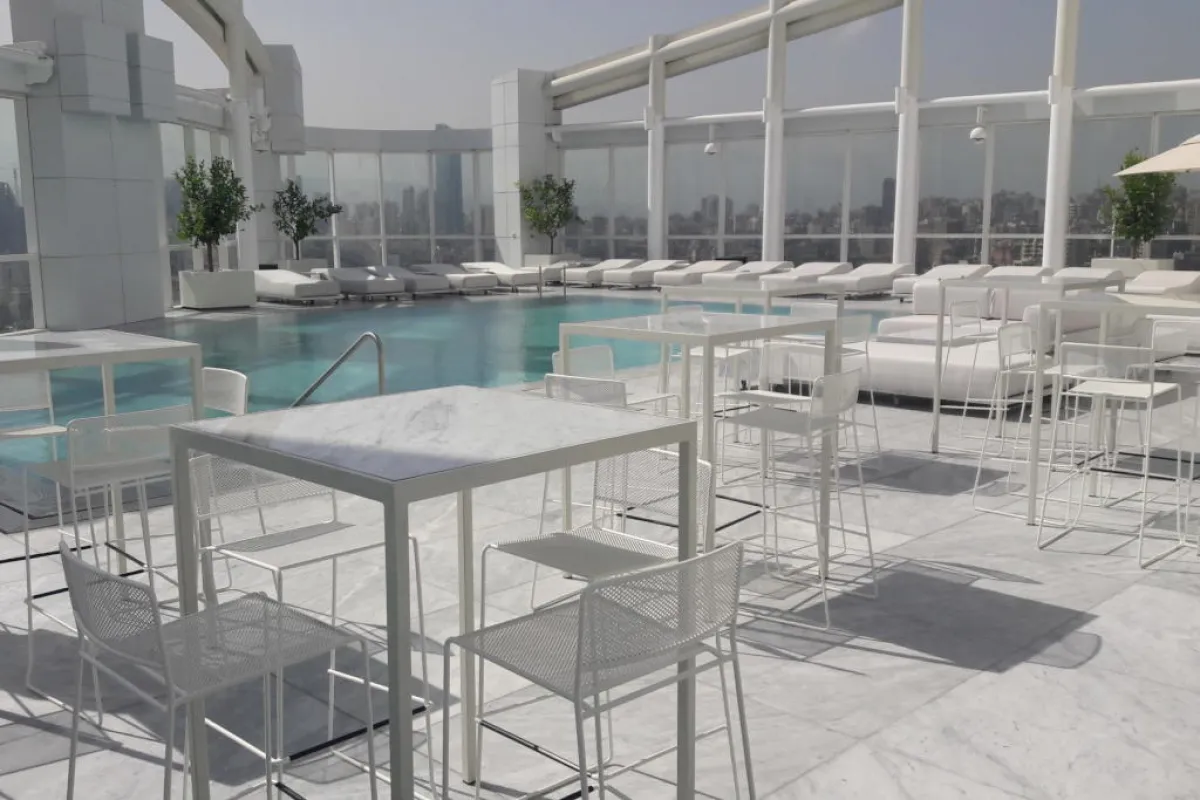 يرحّب Level 26بضيوفه بأجواء حيوية ومساحات مفتوحة يطغي عليها اللون الأبيض، من الأثاث والرخام وحوض السباحة المنعش، إلى البار الطويل المثير للإعجاب، الذي يخلق نقطة محورية اجتماعية في المكان. كما يمكن للضيوف الاستمتاع بمناظر بانورامية رائعة، تمتد من البحر الابيض المتوسط إلى الجبال اللبنانية.