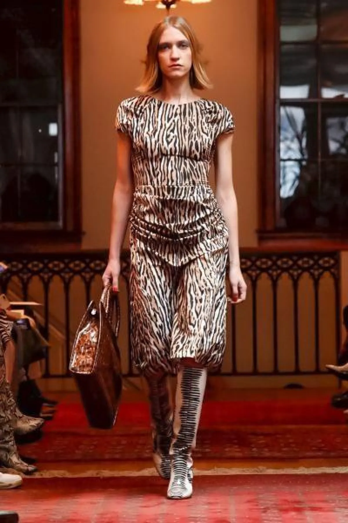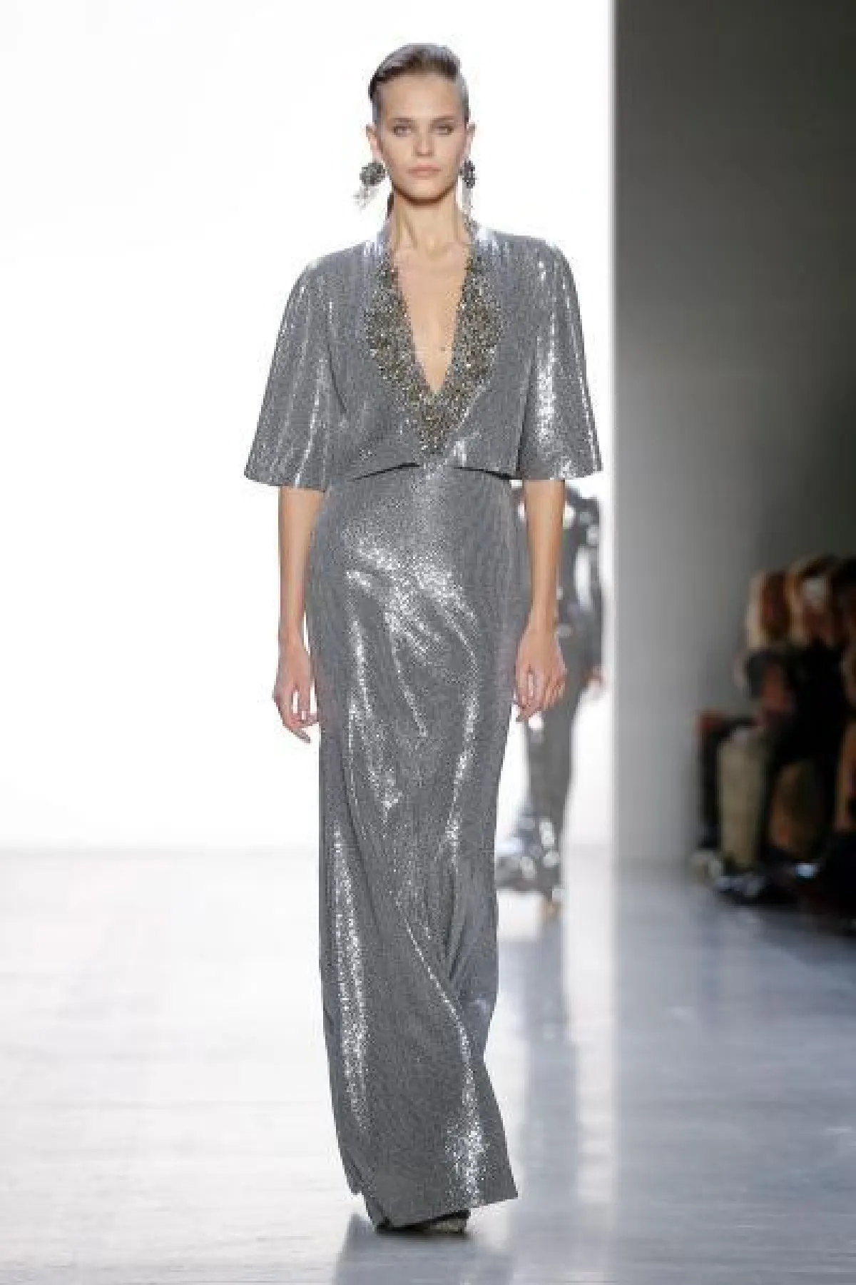 - لا يمكن تجاهل الحضور اللافت للفساتين البراقة التي ضجت بها منصات عروض أسبوع الموضة بنيويورك، لاسيما الفساتين فضية اللون التي صادفناها في مجموعة بادجلي ميشكا Badgley Mischka.
