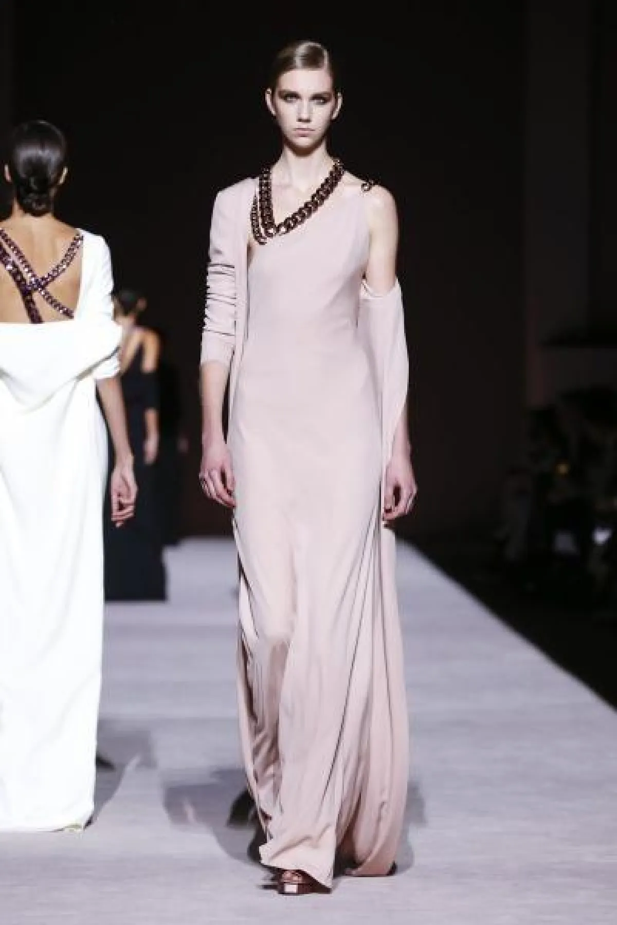 - أعادت عدد من الماركات الفساتين ذات الياقات الملفوفة حول العنق Halter dresses إلى واجهة الموضة فزينت منصة عرض رالف لورين Ralph Lauren بتصاميم أعتمدت على موضة التنانير المنفوشة أو قصة الـ A Line.