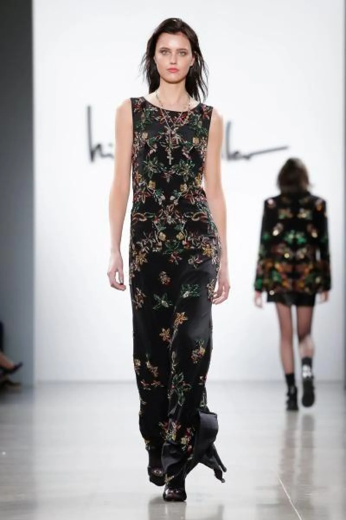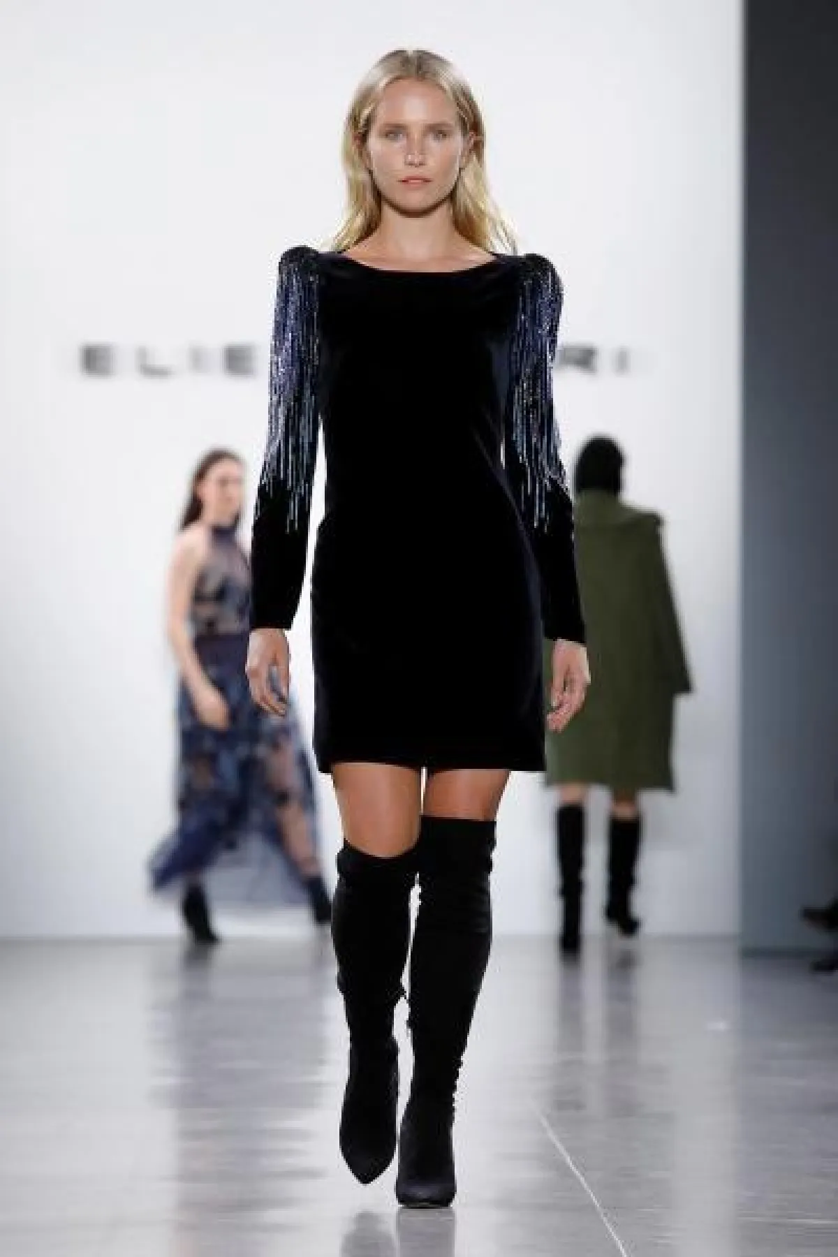 - سجلت الفساتين المخمل حضور غير عادي على منصات عروض أسبوع الموضة بنيويورك، وقُدمت بمختلف الأطوال والقصات، وقد أحببنا الفستان القصير مع أكمام طويلة مطرزة من توقيع ماركة ايلي تهاري