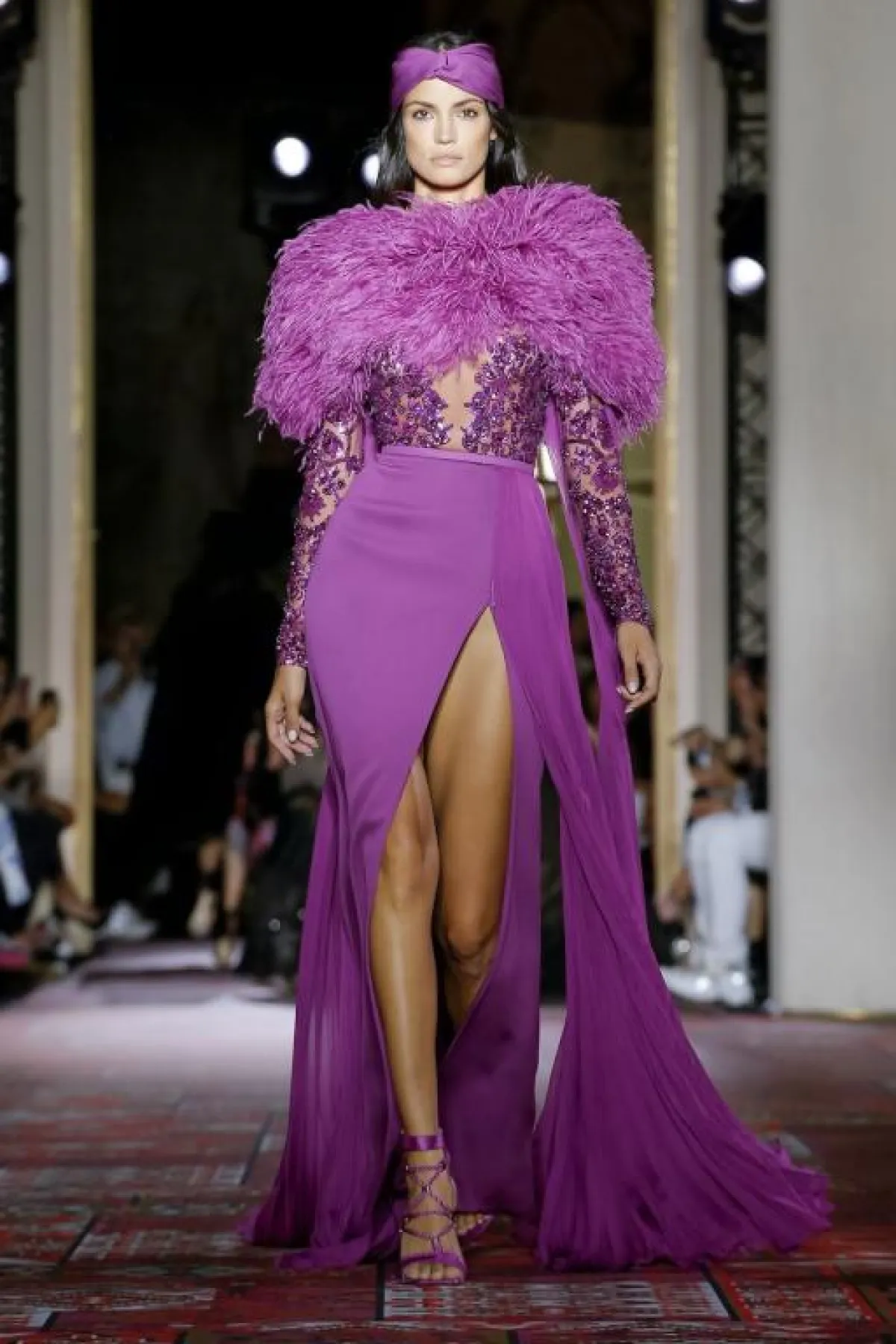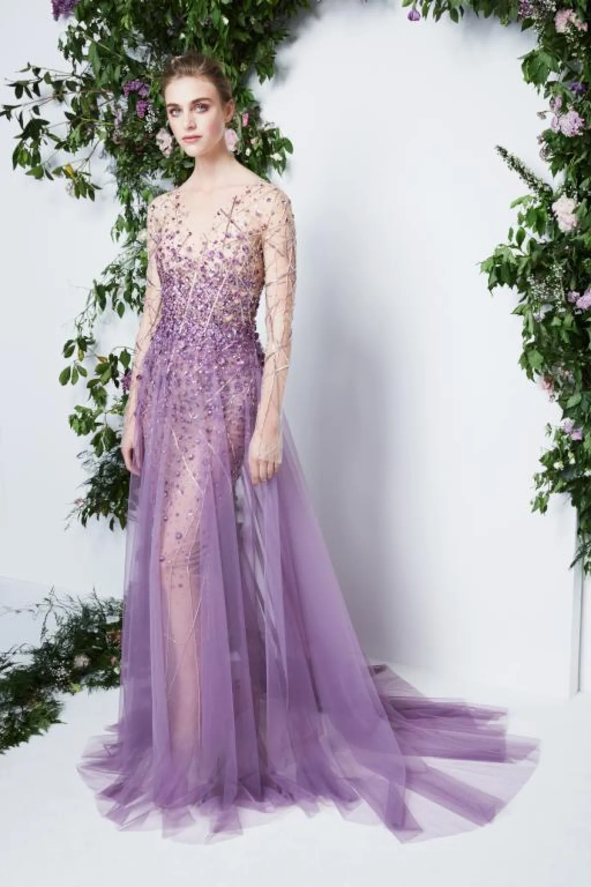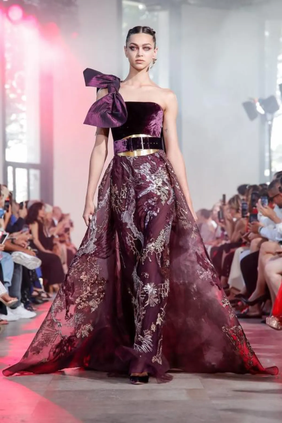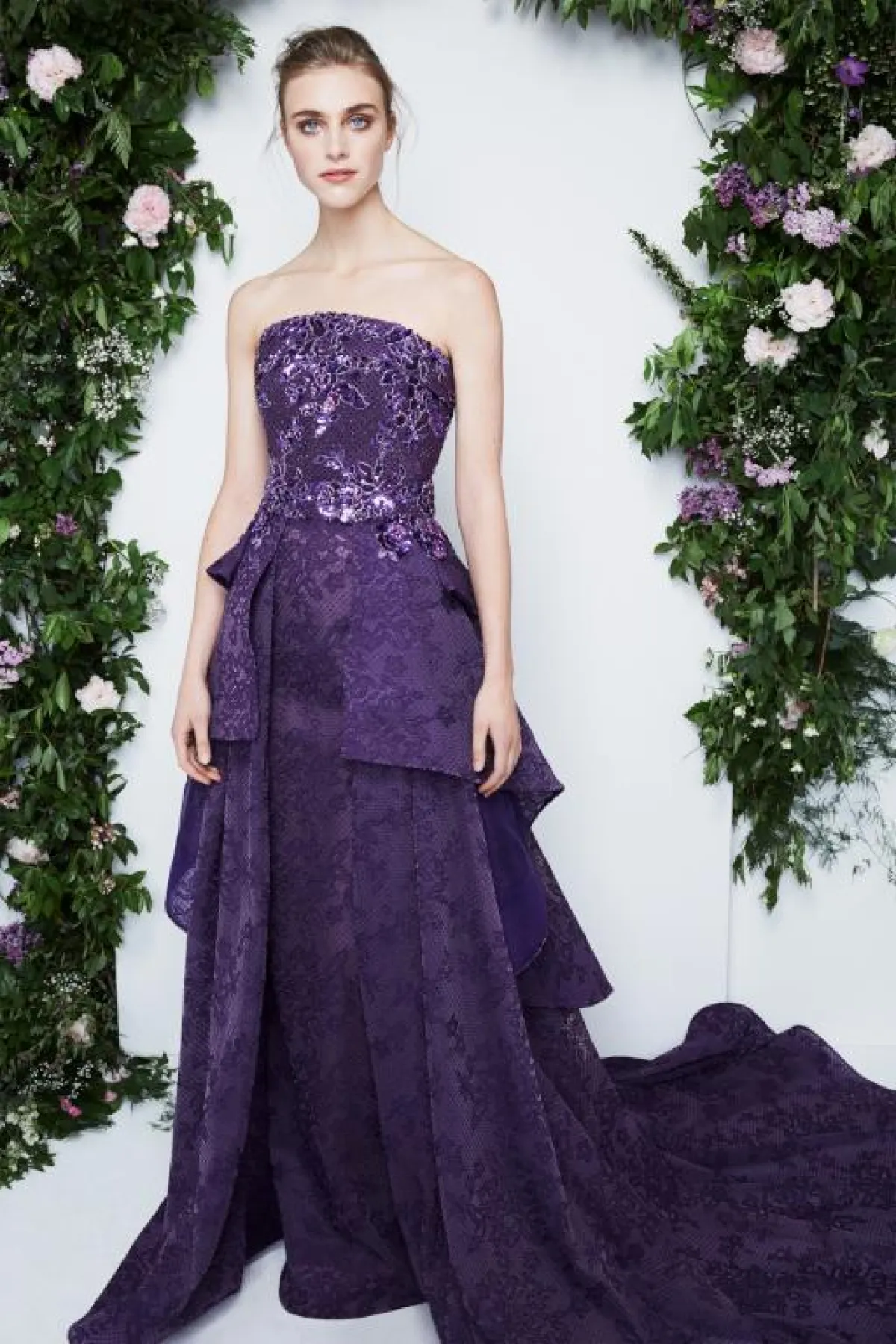 وقدم المصمم زهير مراد Zuhair Murad فساتين أرجواني داكنة بقصّات متنوعة تناسب مختلف أشكال الجسم.