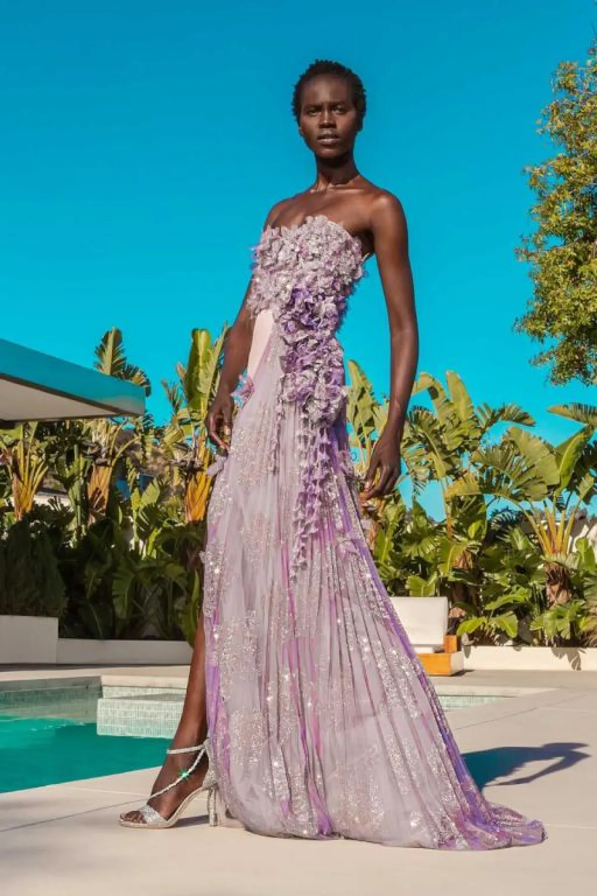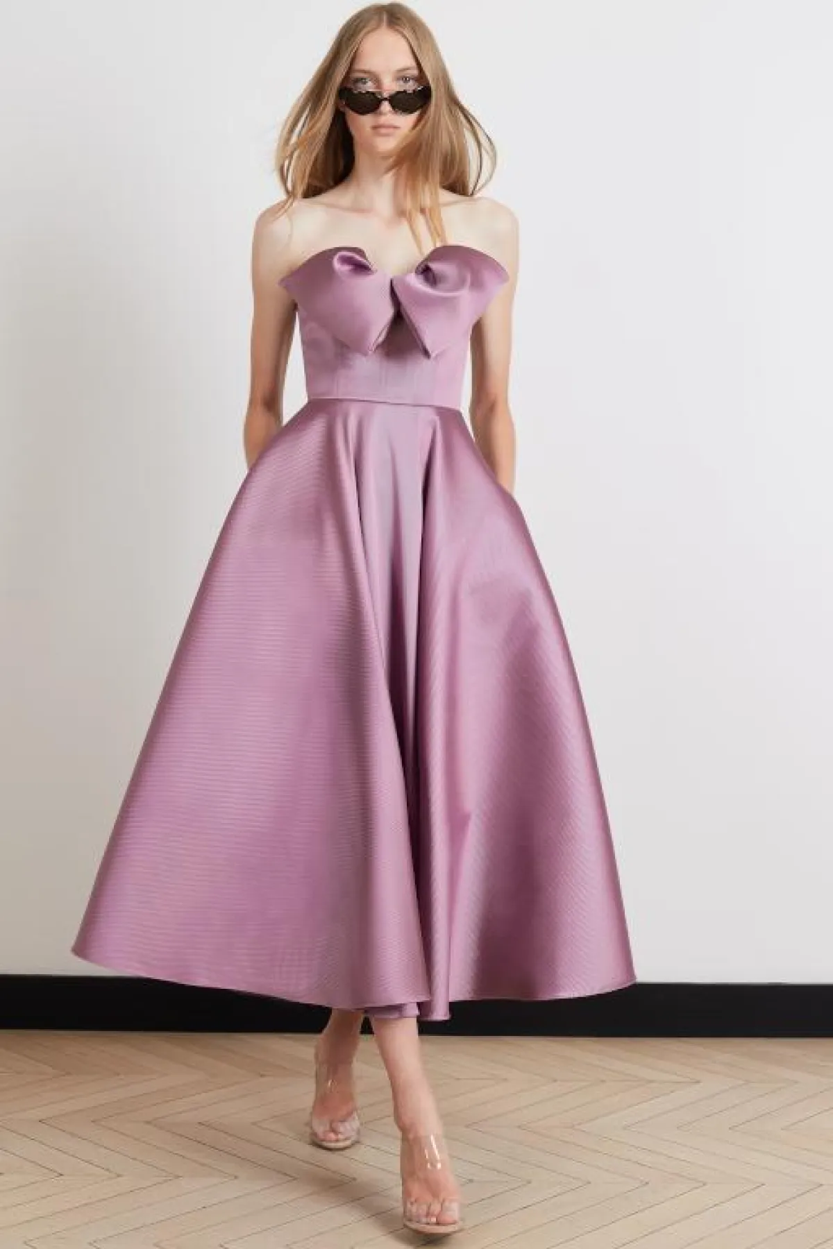 وأعجبتنا الفساتين الأرجواني بالقماش الشفاف من توقيع المصممة اللبنانية ريم عكرا Reem Acra.