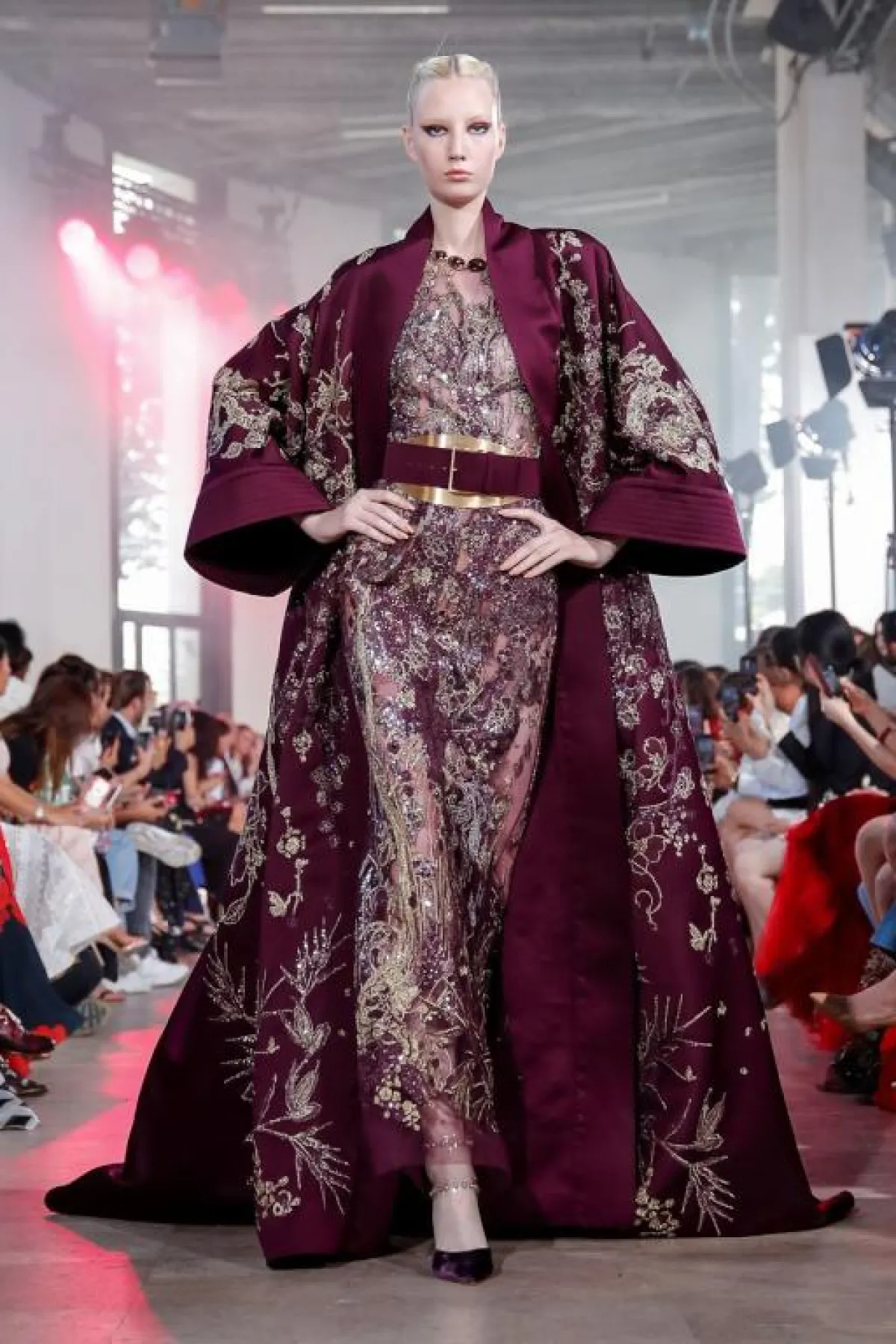 قدم المصمم إيلي صعب العديد من التصاميم الداكنة باللون الأرجواني، سواء الفساتين بالشق الجانبي الطويل وبصيحة الكاب، فضلاً عن الفساتين بالتنورة الإضافية والفساتين القصيرة من الأمام والطويلة من الخلف.